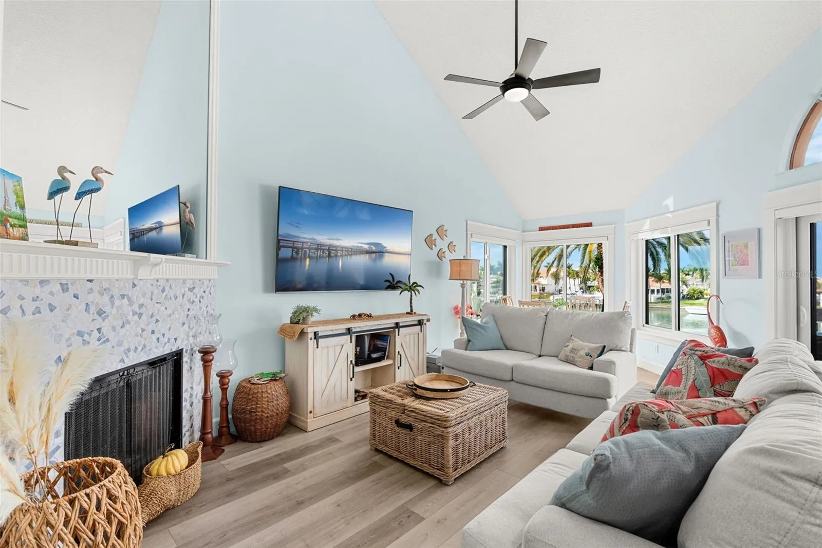 Desirable, Luxurious Living on the Grand Canal of Tierra Verde awaits you. This Tropical Waterfront Retreat offers the perfect island living experience located in the prestigious Pinnacle of Tierra Verde. This END-UNIT–WATERFRONT CONDO offers a catalog worthy, fully updated 3BR/3BA residence, which includes 2 master en-suites, a 50-ft deep-water DEEDED BOAT SLIP, 10K lb. boat lift, with an additional “tender” davit for a second sea craft. The interior includes an open-concept filled with lighting that reflects beautifully on the custom quartz countertops—overlooking the good life. The upscale kitchen offers beautiful stainless-steel appliances, white cabinets and an elegant backsplash opening up seamlessly into the spacious living room. From there, you can step outside to your PRIVATE DECK overlooking the HEATED POOL—a RARE year-round feature for your convenience and easy access to fish directly off of the dock. The private balcony provides one of the most breath-taking views that you can get from Florida’s famous and INCREDIBLE SUNSETS from your WEST-facing balcony. This unit comes Fully furnished. All three baths have also been remodeled with upscale tilework and finishes. The upstairs Master Bedroom suite is superb, offering a large walk-in closet, fully updated bathroom with an extended shower and a balcony overlooking the living room. The loft space next to the master suite is a great area for an office space. The 2nd Bedroom is also a master bedroom, with a gorgeous en-suite bath and a walk-in closet. Additional features include hurricane-impact windows, Automatic shutters, a HUGE ground-floor storage room, nearly ~300 SQFT of additional space and a covered parking spot with an additional storage closet in the carport next to the parking space. The convenience of this location is unbeatable, a bike ride away from award-winning beaches, St. Pete Beach and Fort Desoto Beach. Ft. DeSoto has nearly three miles of beach, camping and public boat ramp as well as dining and shopping. seven miles of paved trail and two fishing piers! Short boat drive for Quick Access to the Gulf Waters for FISHING and BOATING. A short drive to downtown St. Petersburg. Water and maintenance is included.