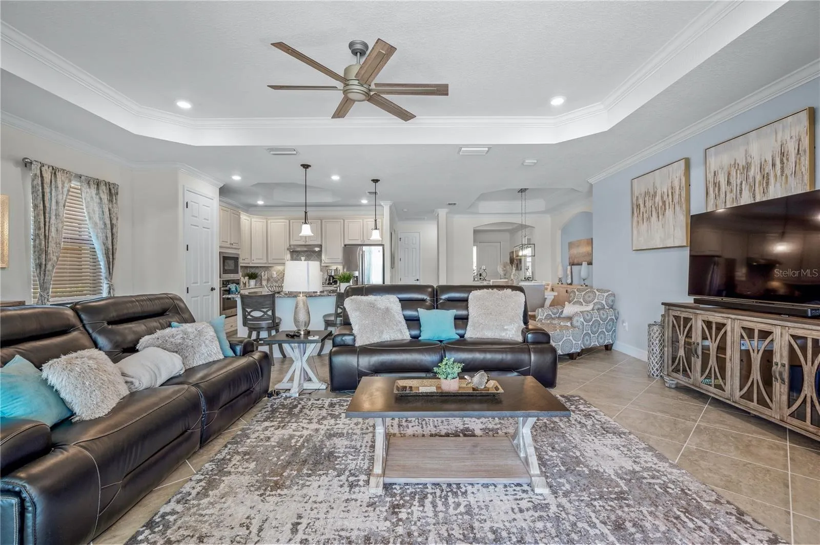 - Ceiling Fans(s), Crown Molding, Open Floorplan, Thermostat, Primary Bedroom Main Floor, Split Bedroom, Window Treatments, Tray Ceiling(s)