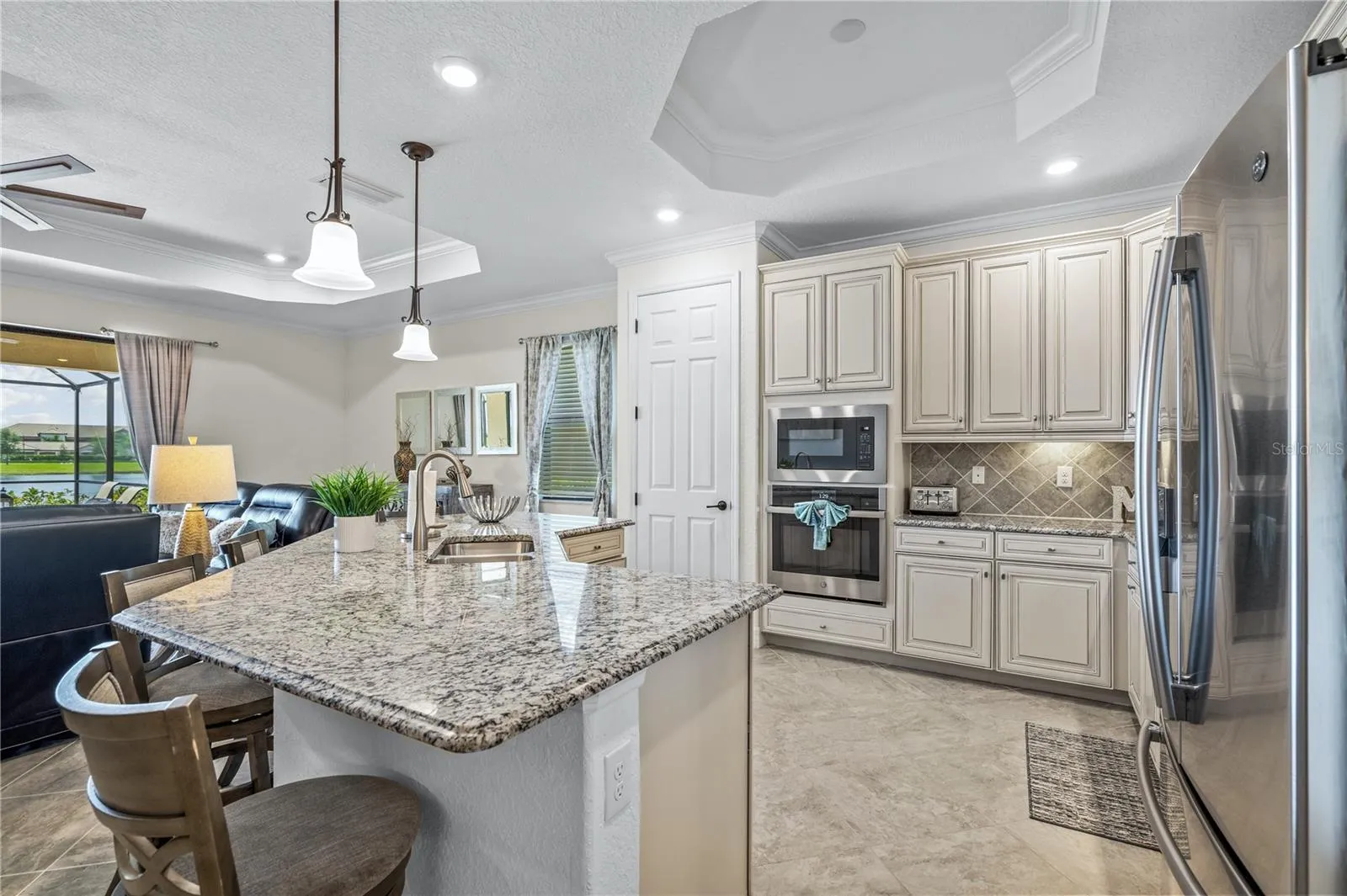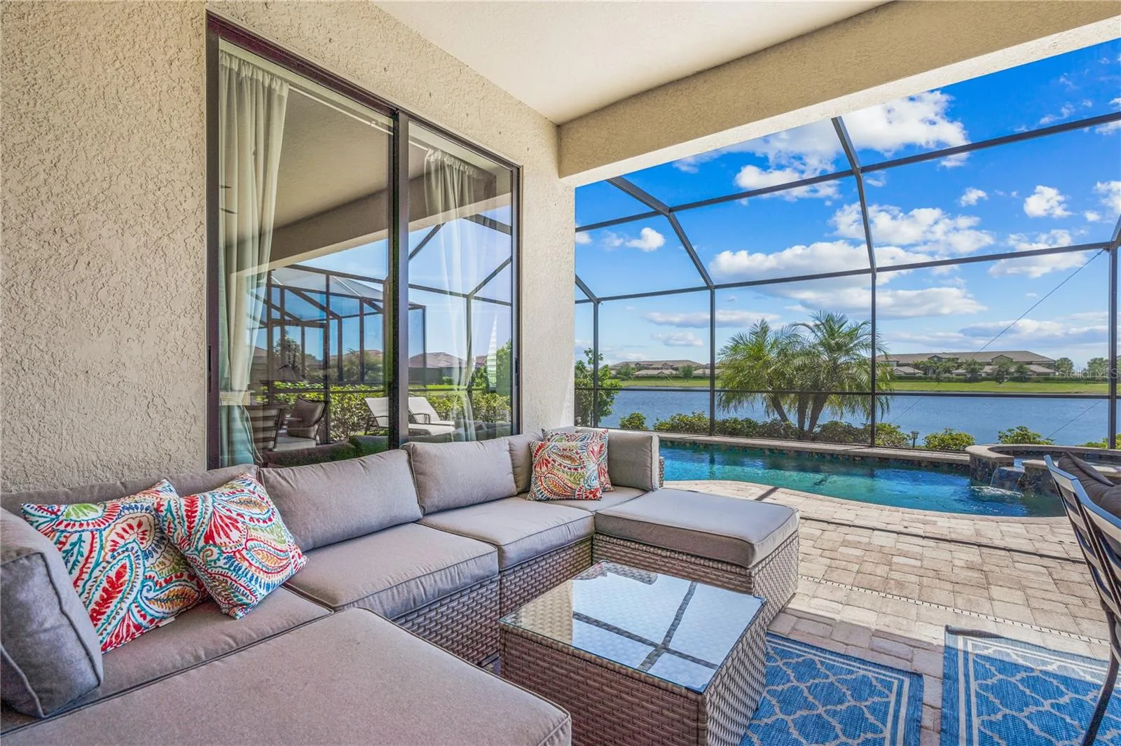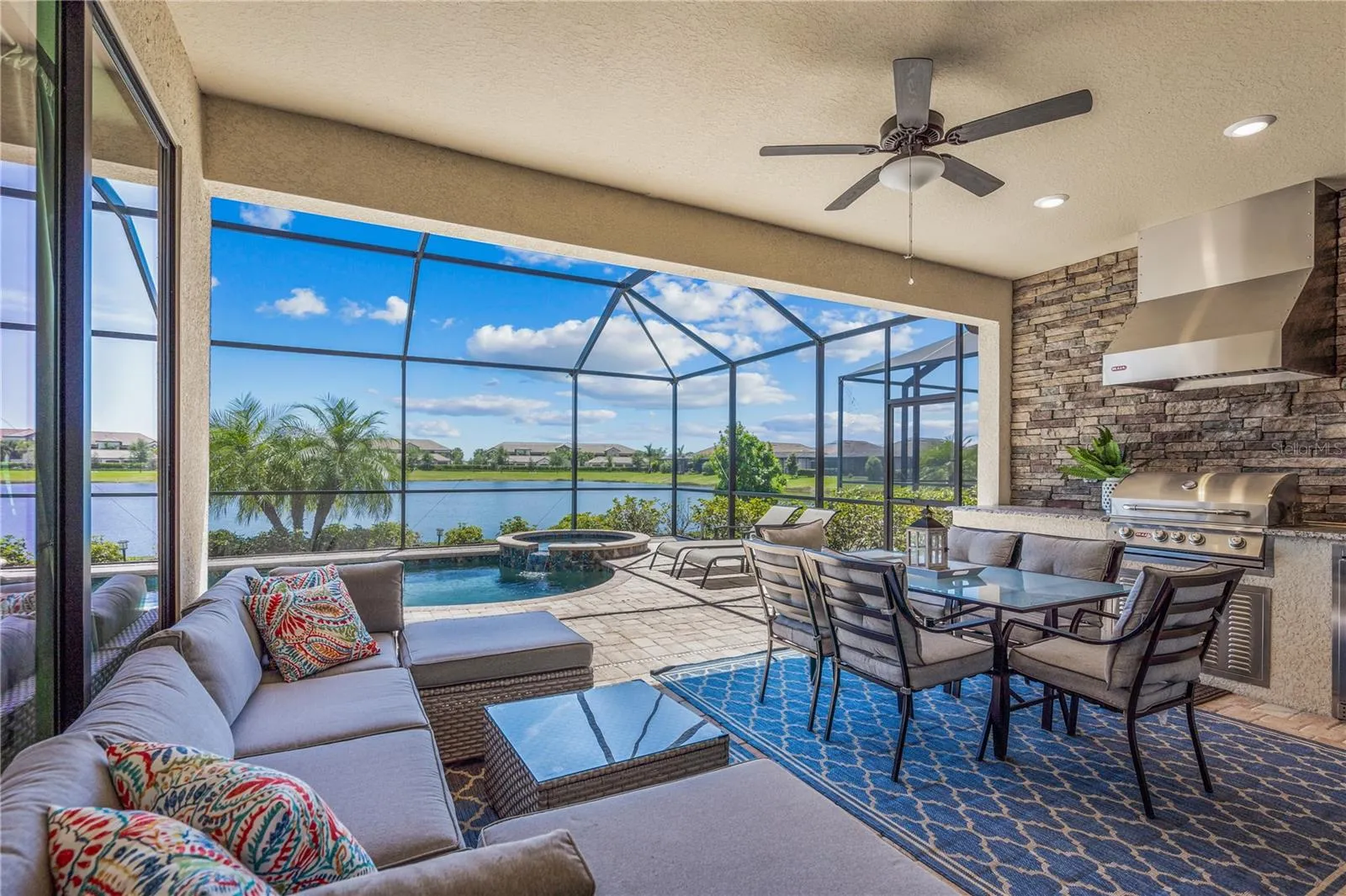 Relish in the views, hop in the pool. Soak up some sun, and have some fun. That’s all there is left to do with this turnkey home nestled in the heart of Lakewood National. This sought after community in Lakewood Ranch boasts all the amenities you could possibly want. With a state of the art amenity center that features a resort style pool and spa, top of the line fitness and spa facilities, two onsite restaurants, tennis and pickle ball courts, they really do have it all! This community is a golfers paradise and a haven for worry free living. Put your skills to the test on one of the two meticulously maintained Arnold Palmer designed golf courses, Piper and Commander, or enjoy brushing up on your skills at the pro shop and driving range. This Isabella floorpan home comes fully furnished and features 4 bedrooms and 2 full baths in a split layout, a two car garage, private pool and spa, outdoor kitchen, and spans 2270 square feet. Situated in the center of one of the largest lakes in Lakewood National, this prime location boasts some incredible water views that you can enjoy while lounging in your private pool and spa, or enjoying your favorite beverage on the furnished lanai. Upon entry you are greeted with elegant decor and designer furnishings that accent the bright and open floor plan of this home. The gourmet kitchen features an island with breakfast bar, granite countertops throughout, stainless steel appliances with a wall oven, built in microwave and cooktop, and so much more. The dining room and living room are centrally located in this open layout to make entertaining a breeze. The private owner’s suite offers a plethora of space and features dual walk-in closets, an ensuite master bath with built-in soaker tub, split vanities, and a huge walk-in shower. Two additional split bedrooms, and an additional bedroom currently set up as a den/office, along with a full bath with a tiled sunken shower, round out the main living area. Step out onto the lanai and soak in all that this incredible outdoor living space has to offer. The covered area offers a huge lounger patio set complete with an outdoor television. Also featured is the outdoor kitchen you’ve always dreamed of complete with all stainless steel grill, exhaust hood, and beverage refrigerator with granite counter tops and a natural stone backsplash. Cool off in the crystal clear waters of your private pool, or relax in the suds of your spa. With nothing left to do but move in and start enjoying everything this home has to offer, it won’t last long. Schedule your private showing before this rare opportunity is gone!