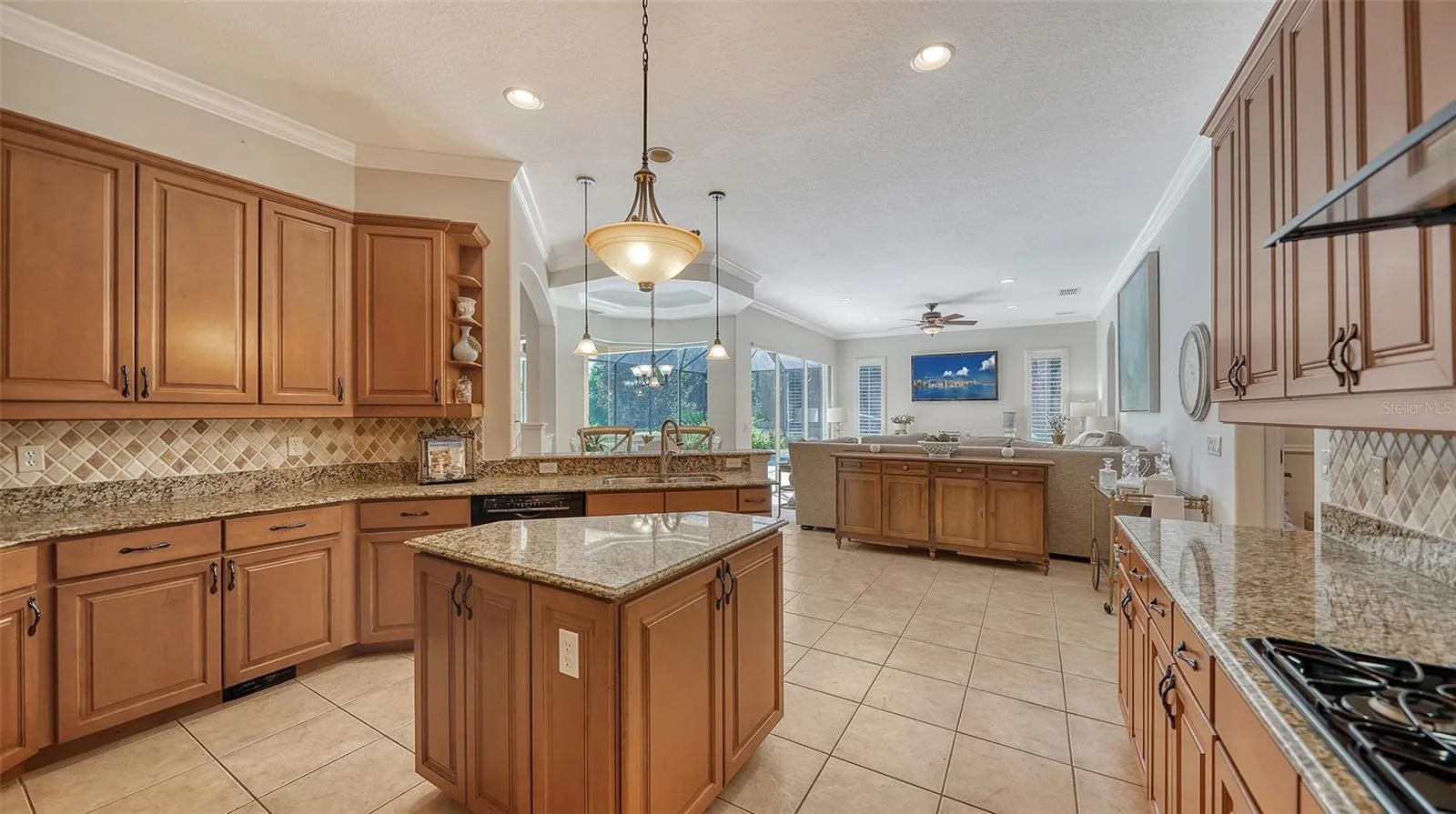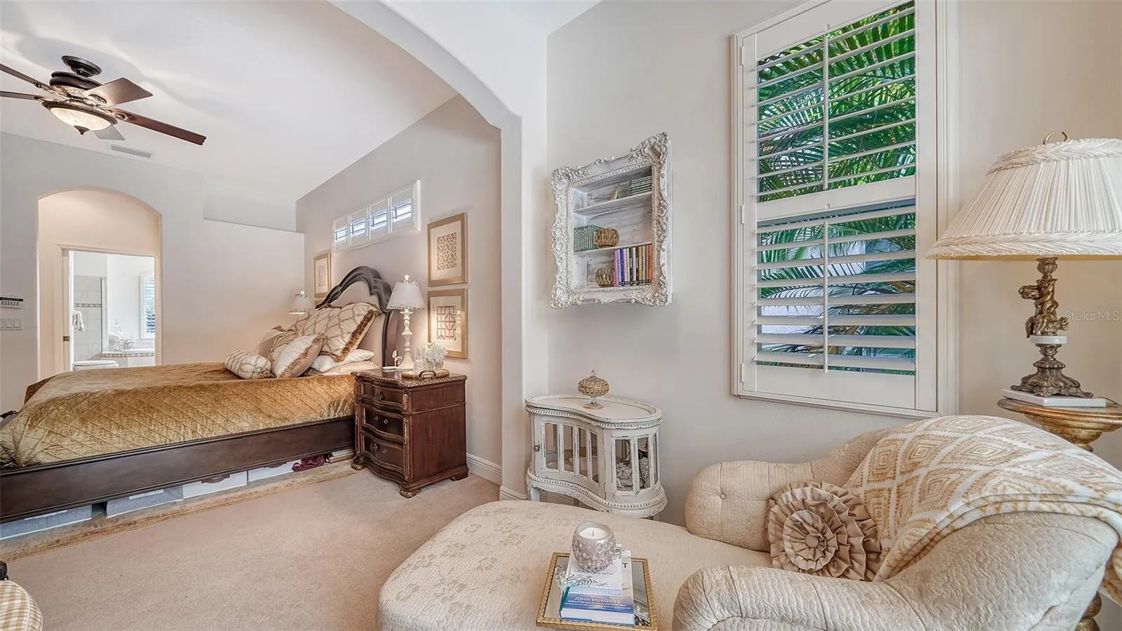 - Ceiling Fans(s), Crown Molding, Walk-In Closet(s), Eat-in Kitchen, Primary Bedroom Main Floor, Split Bedroom, Window Treatments, Stone Counters, Solid Wood Cabinets, Central Vaccum