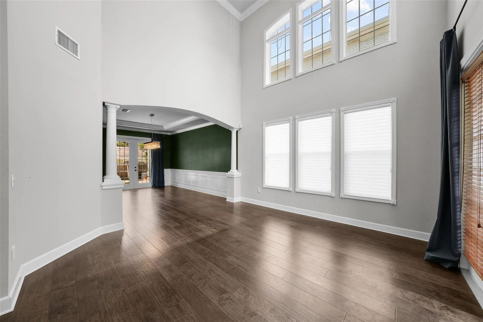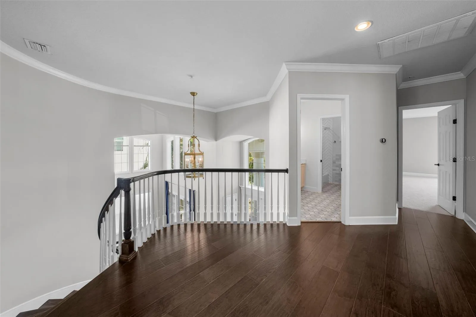 - Ceiling Fans(s), Crown Molding, Walk-In Closet(s), Living Room/Dining Room Combo, Eat-in Kitchen, Kitchen/Family Room Combo, Window Treatments, High Ceilings, Solid Wood Cabinets, Solid Surface Counters, Tray Ceiling(s), PrimaryBedroom Upstairs