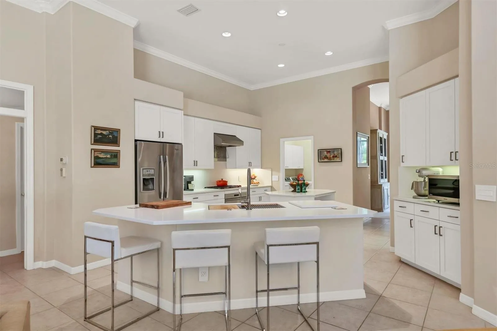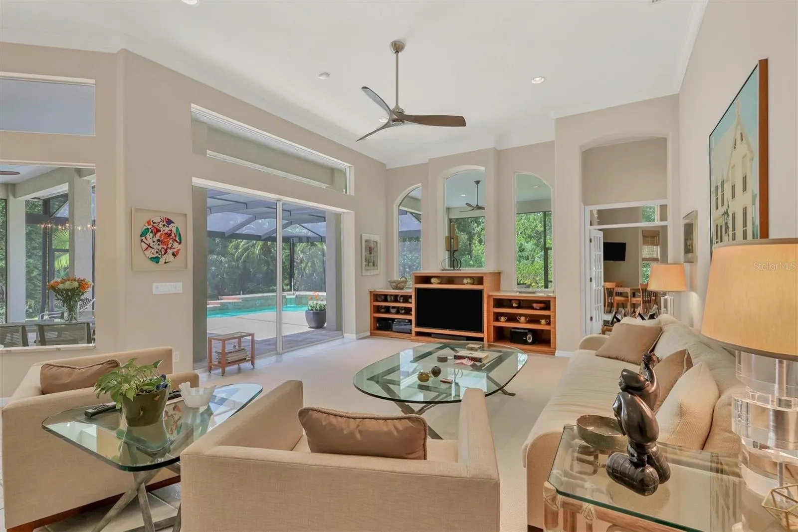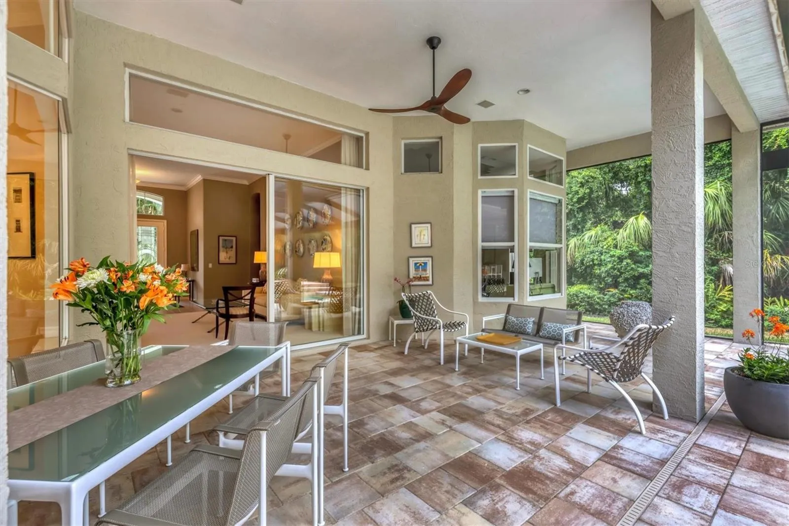 The community, the location and the home can only be described as “pure opulence” This custom Ashford model, designed by Anchor Homes, sits at the end of a quiet cul-de-sac in Devonshire Ct at University Park Country Club…a community with mature landscape and sprawling natural beauty. This has been identified as THE premier master-planned community in the Sarasota area. Behind the secured, staffed entrance is an award-winning, resident-owned community featuring 27 holes of four-star rated golf, eleven lighted Har-Tu tennis courts, Pickle ball arena, fitness center, croquet, miles of tree-lined streets for walking or biking, newly remodeled clubhouse and first-class dining. This 3100 sq ft home boast 3 bedrooms, 3 baths, formal living, dining, family room, plus bonus room. Open kitchen, newly updated, is a chef’s dream, with WOLF appliances including gas cook top and double ovens. Miele dishwasher, counter depth French door refrigerator and Thermidor custom stainless hood. Center work island and large breakfast island will make this the favorite gathering spot for family and friends. Formal living/dining and family rooms allow room to grow…room for family and friends to gather and simply the perfect entertaining space. Bonus room with tranquil view and sliders to pool offers opportunity for 4th bedroom, billiard room, private office, craft or flex area. Remodeled Owner’s retreat invites you with new custom bathroom, designer quartz, custom cabinetry, oversized glass enclosed shower. Bedroom features double walk-in closets with designer built- ins, and a spacious sleeping room with custom Hunter Douglas electric window treatments, coffered ceiling detail, crown molding and a bay window with a fabulous private view of pool and preserve. Guest rooms are private and spacious with newly updated shared bath. Stepping outside and the pool and spa area will take your breath away, surrounded by a newly installed “Picture framed” pool enclosure, the beauty and privacy of the lush tropical Florida flora is simply nothing short of serene. Entertain on the expansive paver bricked pool deck with two covered lanai areas, summer kitchen and oversized patio bar. The pool and spa are heated both with natural gas and solar for efficiency. Whole house generator for peace of mind, TILE ROOF 2016, Dual HVAC AC systems with humidity controls and separate zoning. High ceilings throughout home, crown moldings, custom comfort wall colors, decorative tile, designer carpet. OVERSIZED TWO + car garage with room for golf cart parking or tandum 3 cars! Simply perfect for the most discerning buyers. Home ownership in University Park CC requires social membership, golf memberships are OPTIONAL. See listing agent for complete details. “Located only four miles from downtown Sarasota and its spirited arts community, museums, shopping, dining, and first-class healthcare, University Park is an oasis from the city but close enough to enjoy all it has to offer. It’s only a short 15-minute drive to some of America’s finest beaches, superb outdoor recreation areas, including the internationally renowned Nathan Benderson Park, the famed Ringling Museum, various boating options, and the acclaimed St. Armands Circle.University Park’s breathtaking beauty is unmatched by any other.”