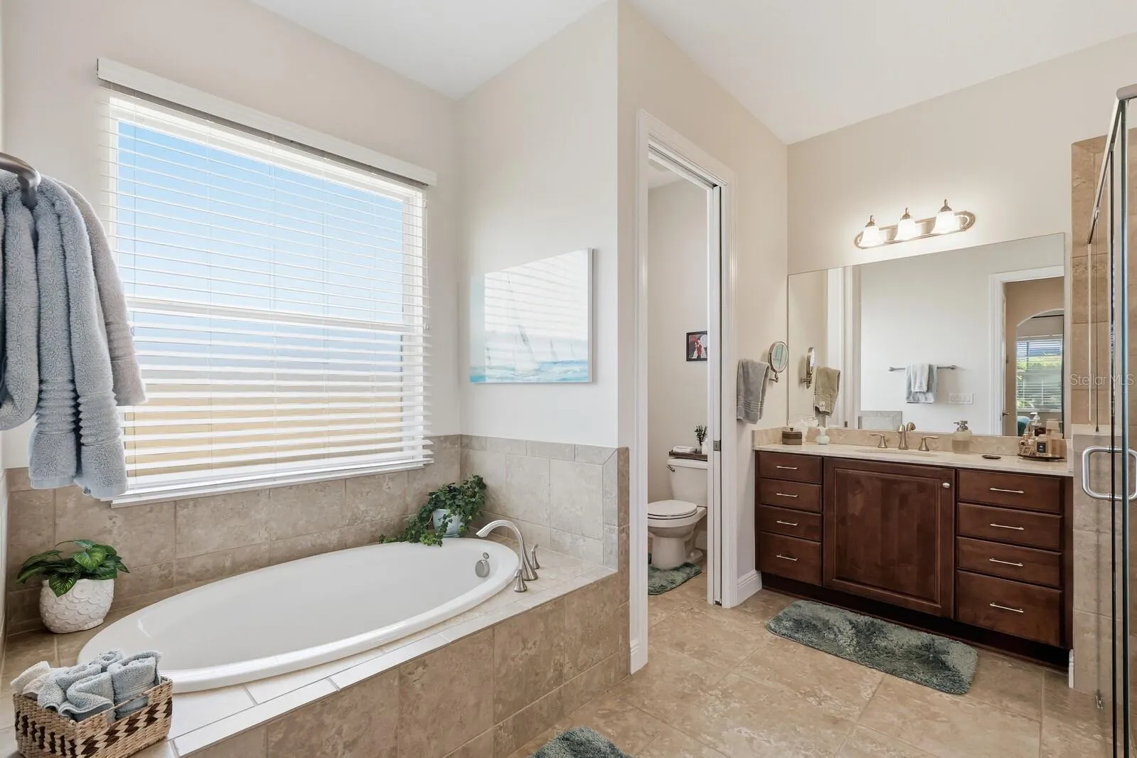 Luxurious Primary Suite: Spacious Primary with walk-in closet and en-suite bath featuring dual sinks, a large soaking tub and separate shower.