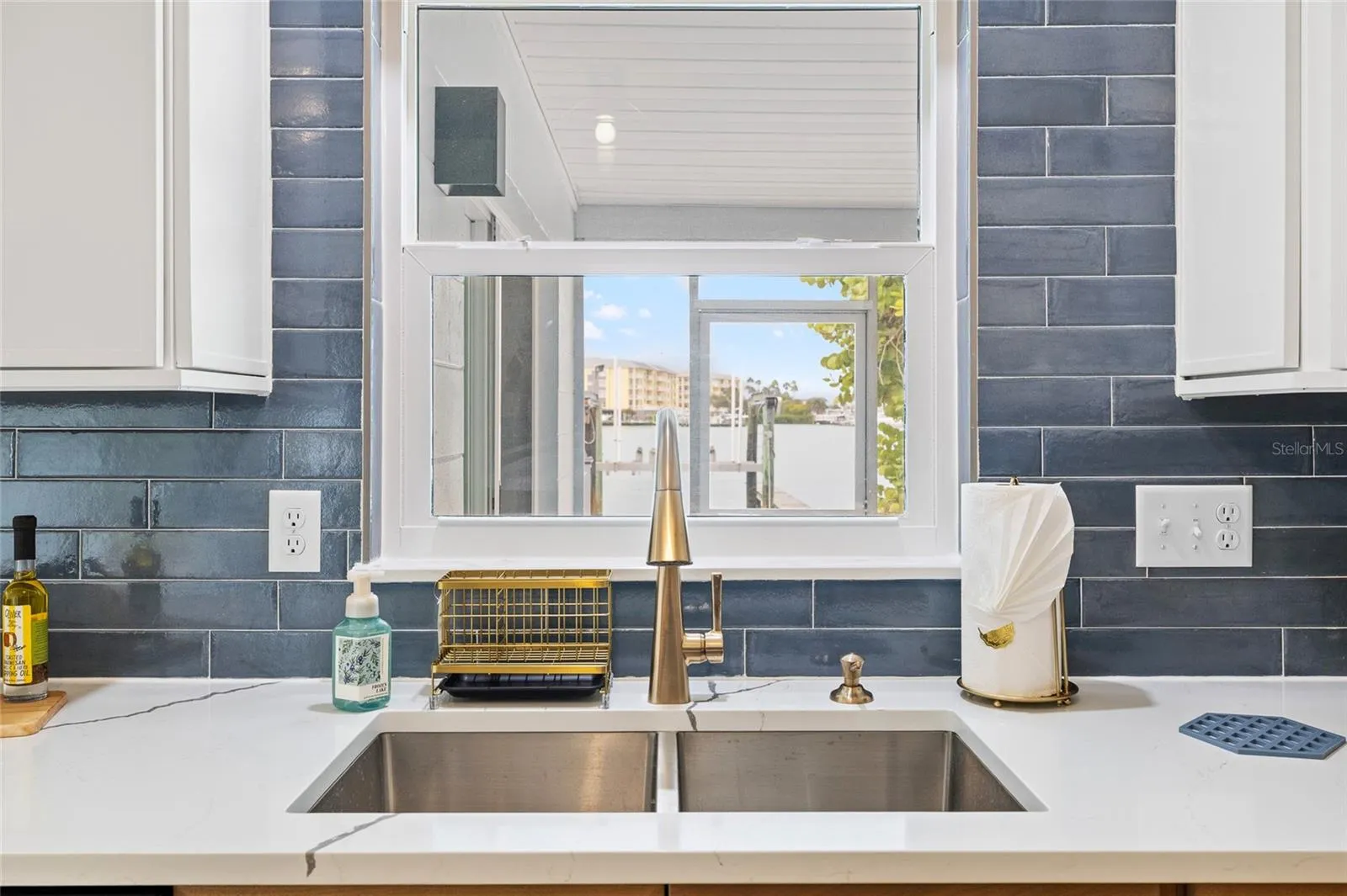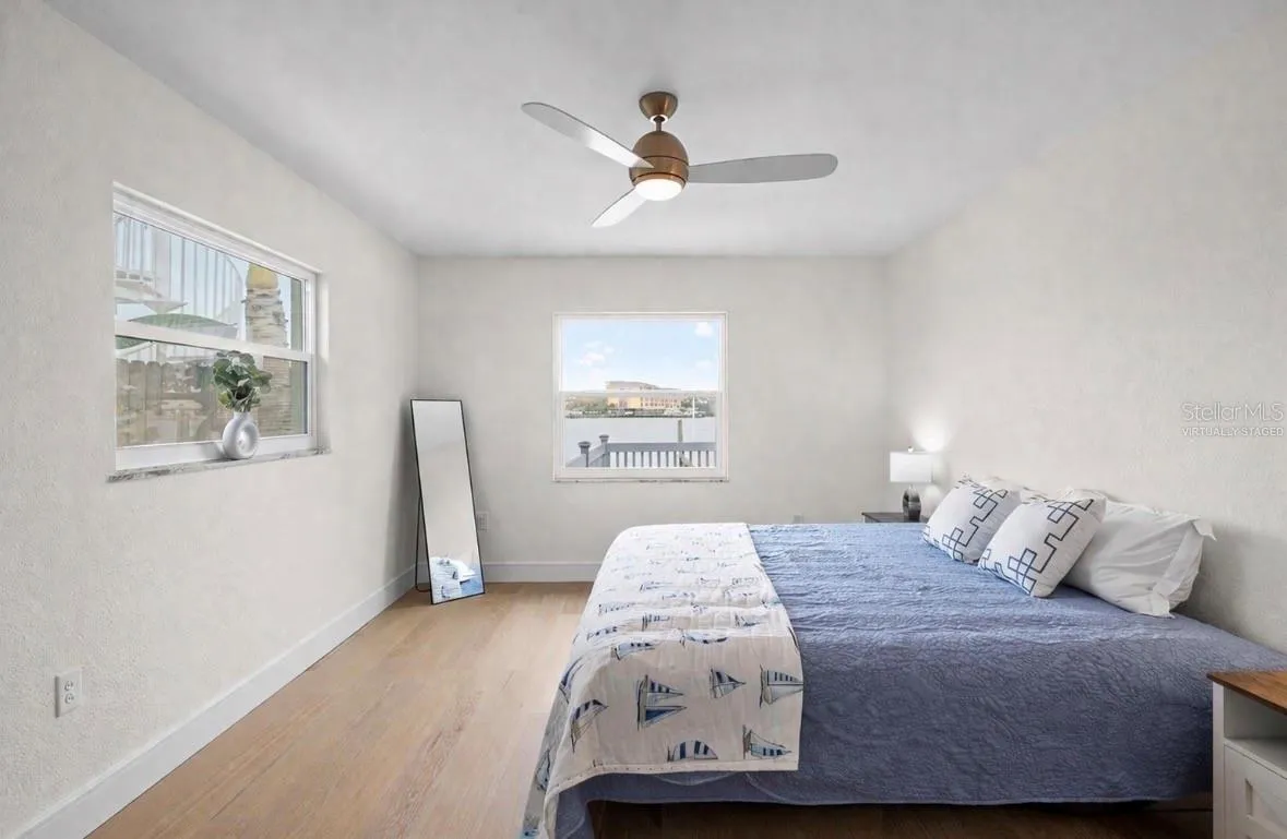 This completely renovated waterfront home in Madeira Shores in Madeira Beach, Florida offers 1,502 square feet of modern coastal living. The stunning kitchen features quartz countertops, recessed cabinets, and new GE stainless steel appliances (2025), flowing into an open-concept living area with luxury vinyl plank flooring throughout. Both redesigned bathrooms showcase designer tile and spa-inspired fixtures. Fresh interior and exterior paint complement the home’s crisp, contemporary feel.