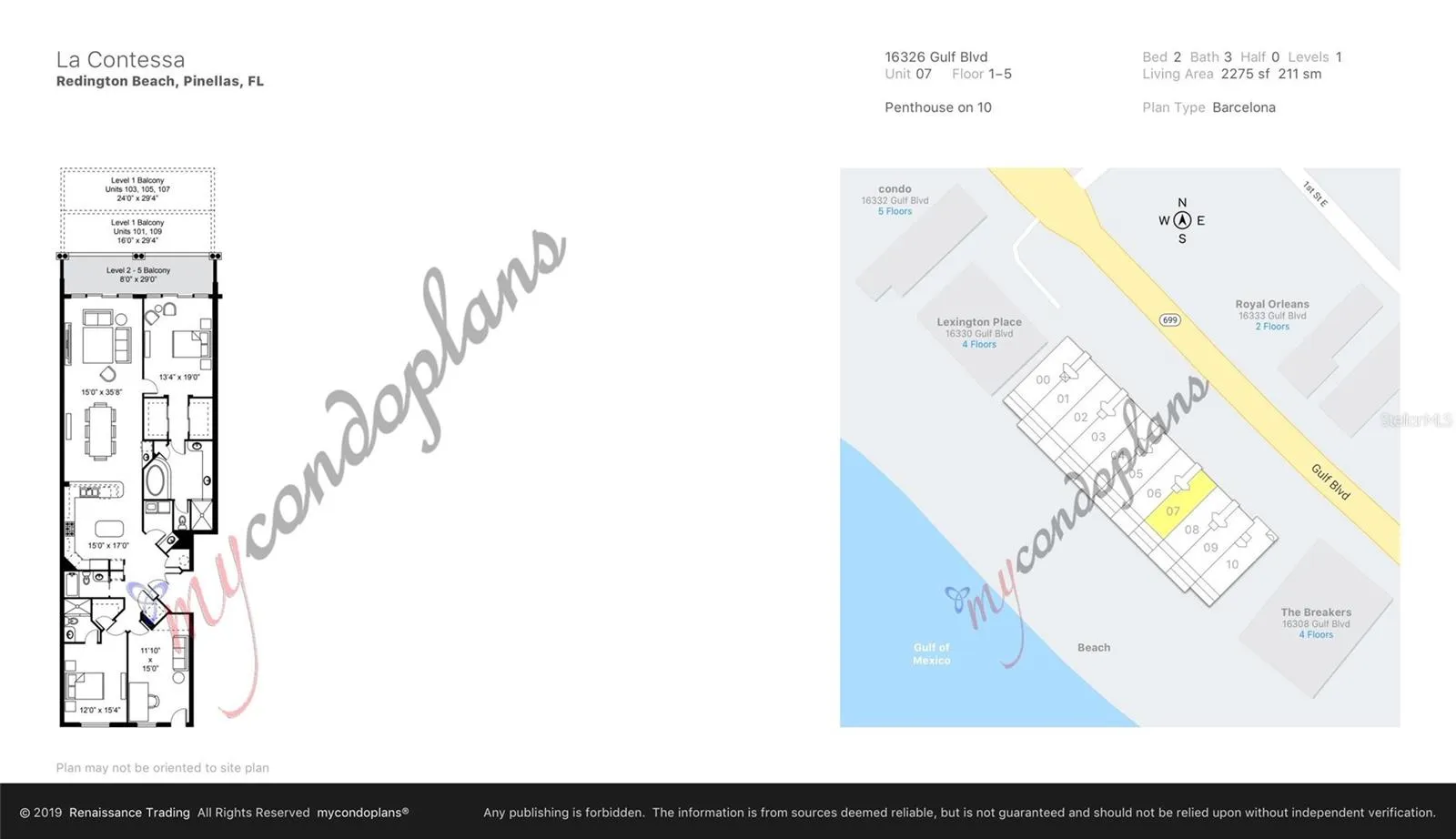 - Tom Stuart Causeway to north on Gulf Blvd; 1-mile on left is La Contessa