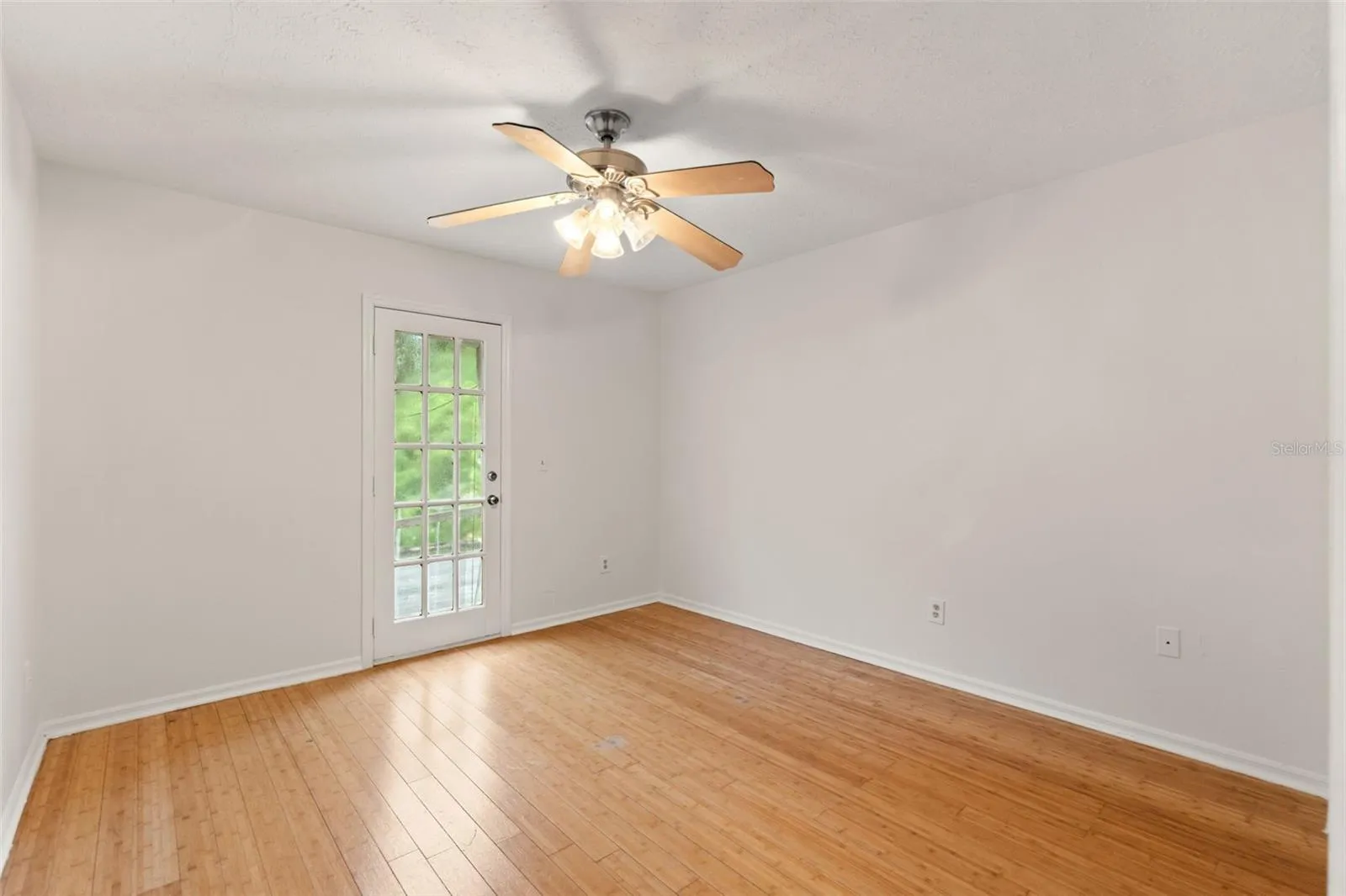 chandelier, and a separate walk-in shower. Elegant bamboo flooring flows throughout upstairs,
