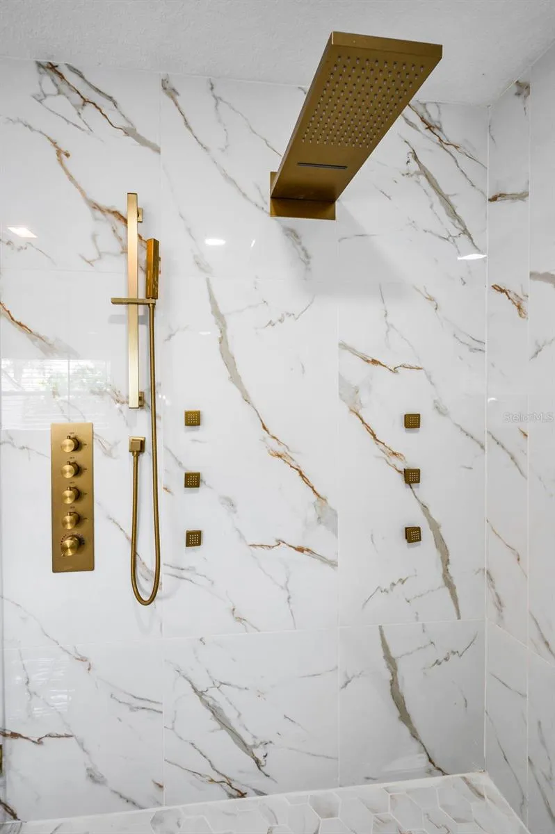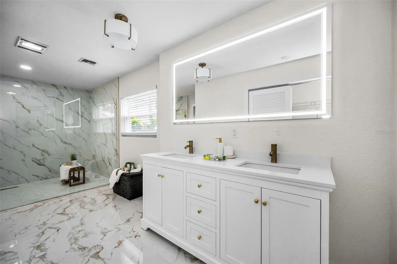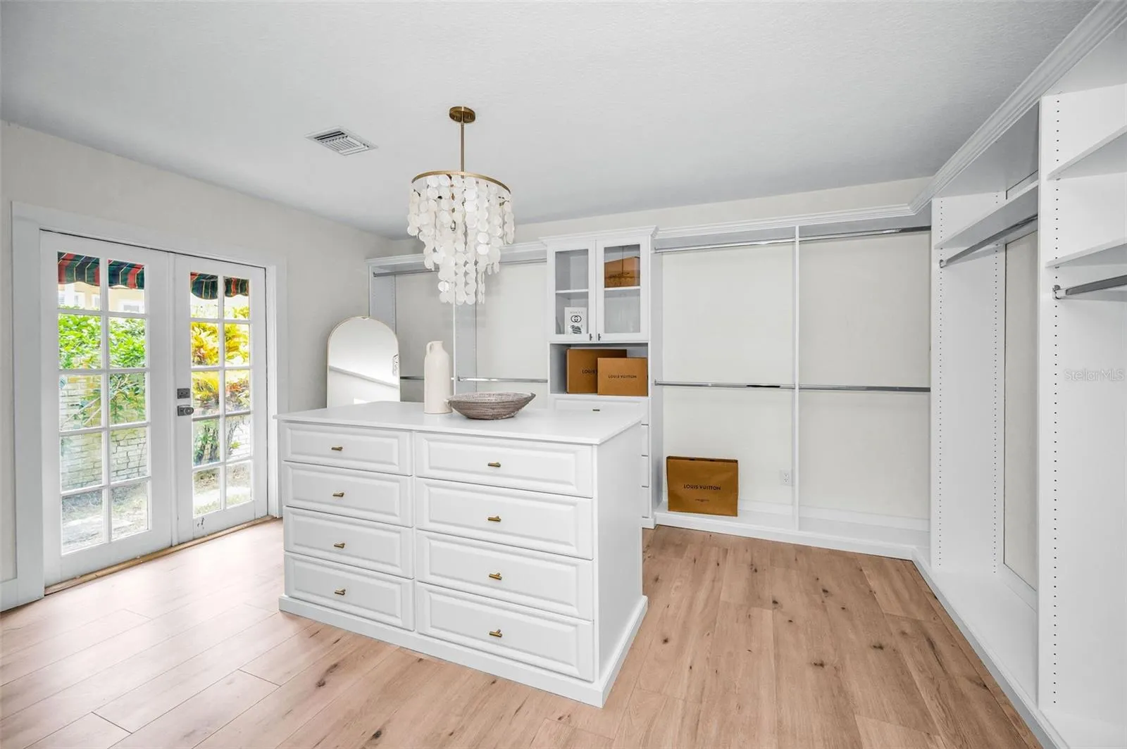 Retreat to the luxurious primary suite, where you’ll find a spa-inspired marble bathroom that rivals the finest resorts—complete with an oversized walk-in shower, dual vanities, and designer fixtures. The expansive dressing room/closet features custom built-ins, a stunning center island, and a statement chandelier, creating a true boutique experience.