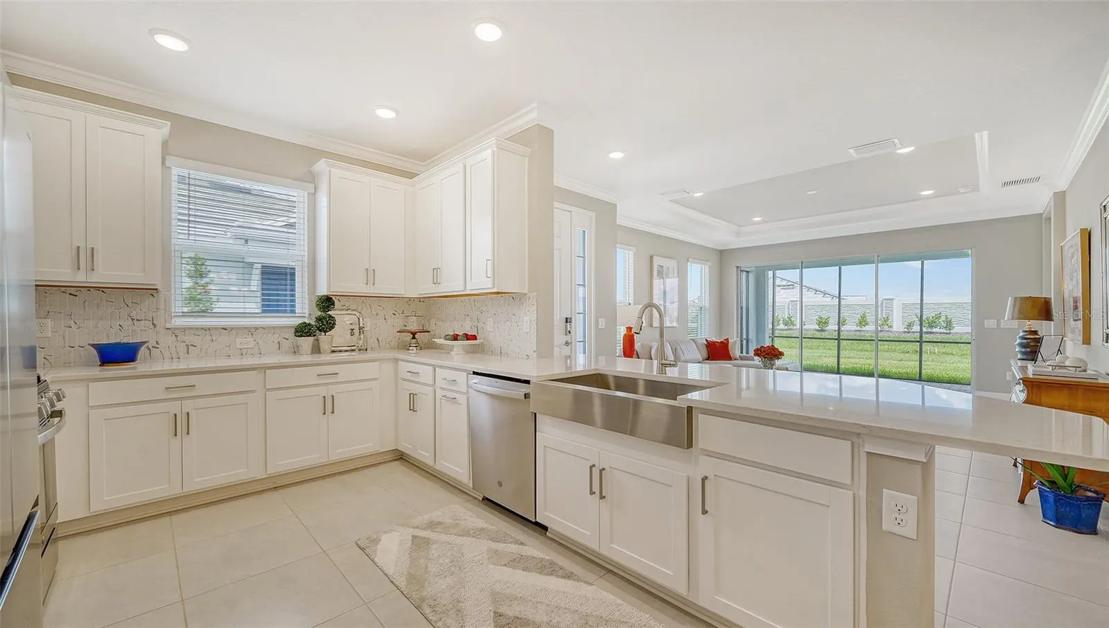 Brand new IBIS FLOOR PLAN villa with a 2-car garage ready for immediate occupancy. 2-Bedroom plus a Den, all decked out and ready for you. Esplanade at Azario is a resort-style, highly sought-after community in Lakewood Ranch. Great opportunity to snap this up before season starts. As you step into this never-been-lived-in villa, you’ll be struck by the open-concept that is light and bright with generous recessed lighting throughout. Expansive living space with 24×24 tile. Carpet in both bedrooms with a pallet of enough tile available if you want to tile the bedrooms. Designer kitchen with popular shaker cabinetry and all new appliances. Separate dining space blends into the kitchen and living area. The primary bedroom and en-suite bathroom have a large walk-in closet, dual sink vanity, expansive shower and private water closet. The second bedroom with attached bathroom and the flex space are strategically located at the front of the home offering privacy and versatility. Flex room can easily be converted, makes a great study or den with pocket doors. Unwind and soak in the serene surroundings on the expanded lanai. Beyond the comforts of the villa, the Esplanade at Azario community offers an exceptional lifestyle with landscaped parks, walking trails, a state-of-the-art fitness center, a resort-style pool and spa, pickleball and tennis courts, and the Bahama Bar full-service restaurant conveniently located poolside. For golf enthusiasts, the Esplanade Golf and Country Club features a championship golf course, golf membership is not mandatory, but you still have the opportunity to enjoy the course as a non-member for a fee. Conveniently located just a short drive from world-class shopping, dining, beaches, and entertainment. Lakewood Ranch has been recognized as the #1 multi-gen master-planned community in the USA for 6 consecutive years. With its thoughtful design and unmatched community amenities, this is more than just a home; it’s a lifestyle.