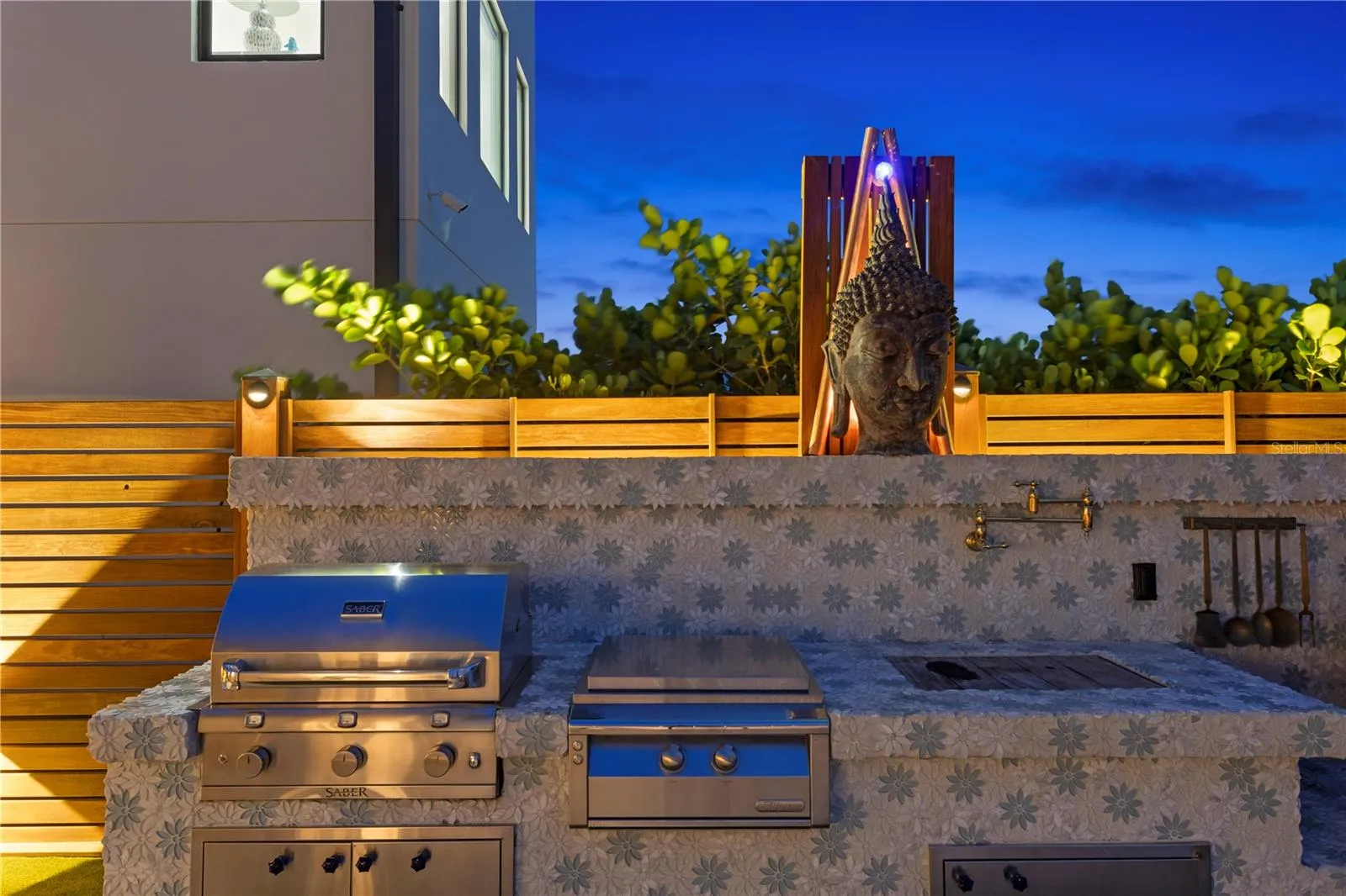 - Lighting, Balcony, Private Mailbox, Rain Gutters, Sliding Doors, Garden, Outdoor Grill, Outdoor Kitchen, Outdoor Shower