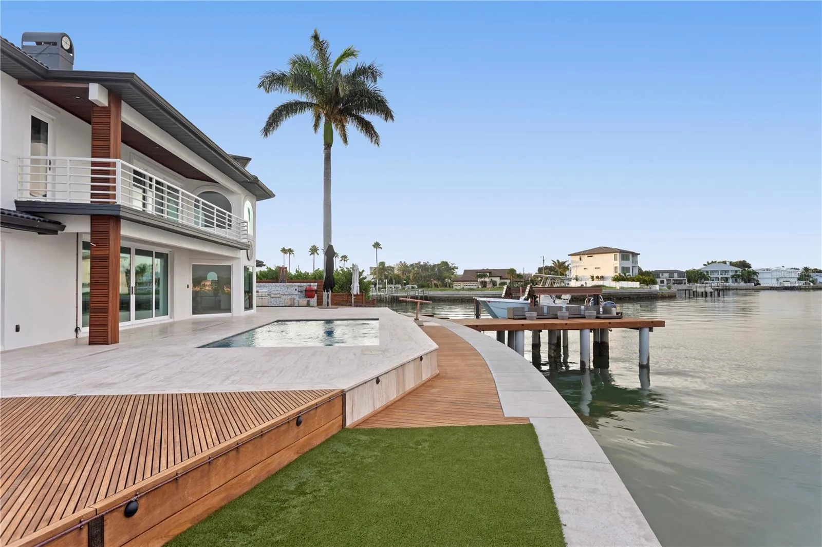 So the home is situated at the end of a cul-de-sac on a 120’ Foot Point Lot surrounded by the Intracoastal Waterway that descends into Clearwaters’ Harbor. Located within the tony Bastion that is Belleair Beach- well known for its’ privacy, security and beach access restricted beaches. If you recall the highest sale to have ever transacted in Pinellas County history happened just around the corner a few years back. Now, we offer this home for what it is- Either Lot Value or Wholly Capable of An Interior Build Out, Which Would Run around $300k. The interior is a shell that was intended to be someone locals Forever home, but as we’ve learned Forever is a very long time, and now it’s current steward is off to start a new, yet reoccurring chapter in Southeast Asia. The painstaking effort towards the Brazilian hardwoods, and all materials exhibited on the exterior is obvious. One can envision a modern steel and glass sculpture of a home sitting on this lot which would without a doubt present the most compelling Water Vista within the Belleairs.