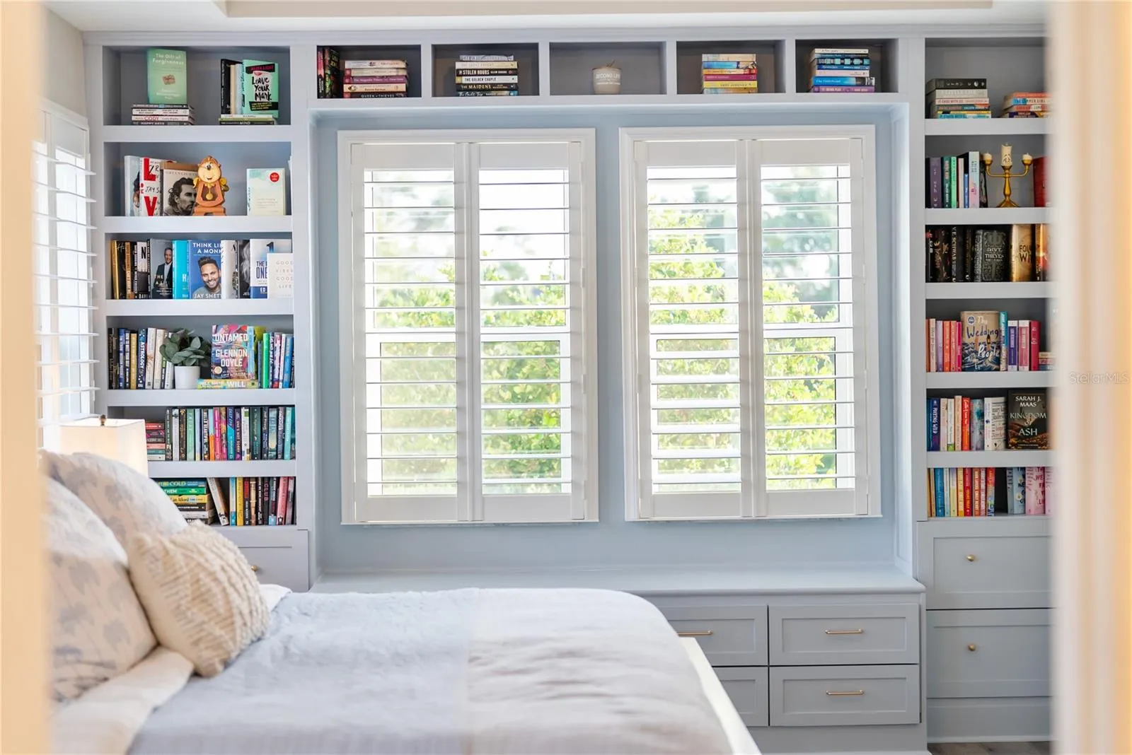 The flexible layout is ideal for modern living, including a dedicated office/den with elegant French doors, offering a quiet space for focus. Retreat to the luxurious primary suite, a sanctuary redefined by custom built-in cabinetry that ingeniously transforms part of the space into a versatile living area or home office nook, complete with a charming built-in bookcase. Upstairs, you will find 2 generous bedrooms surrounding a massive bonus/entertainment area and a dedicated office nook, providing endless possibilities for play, study, or media.