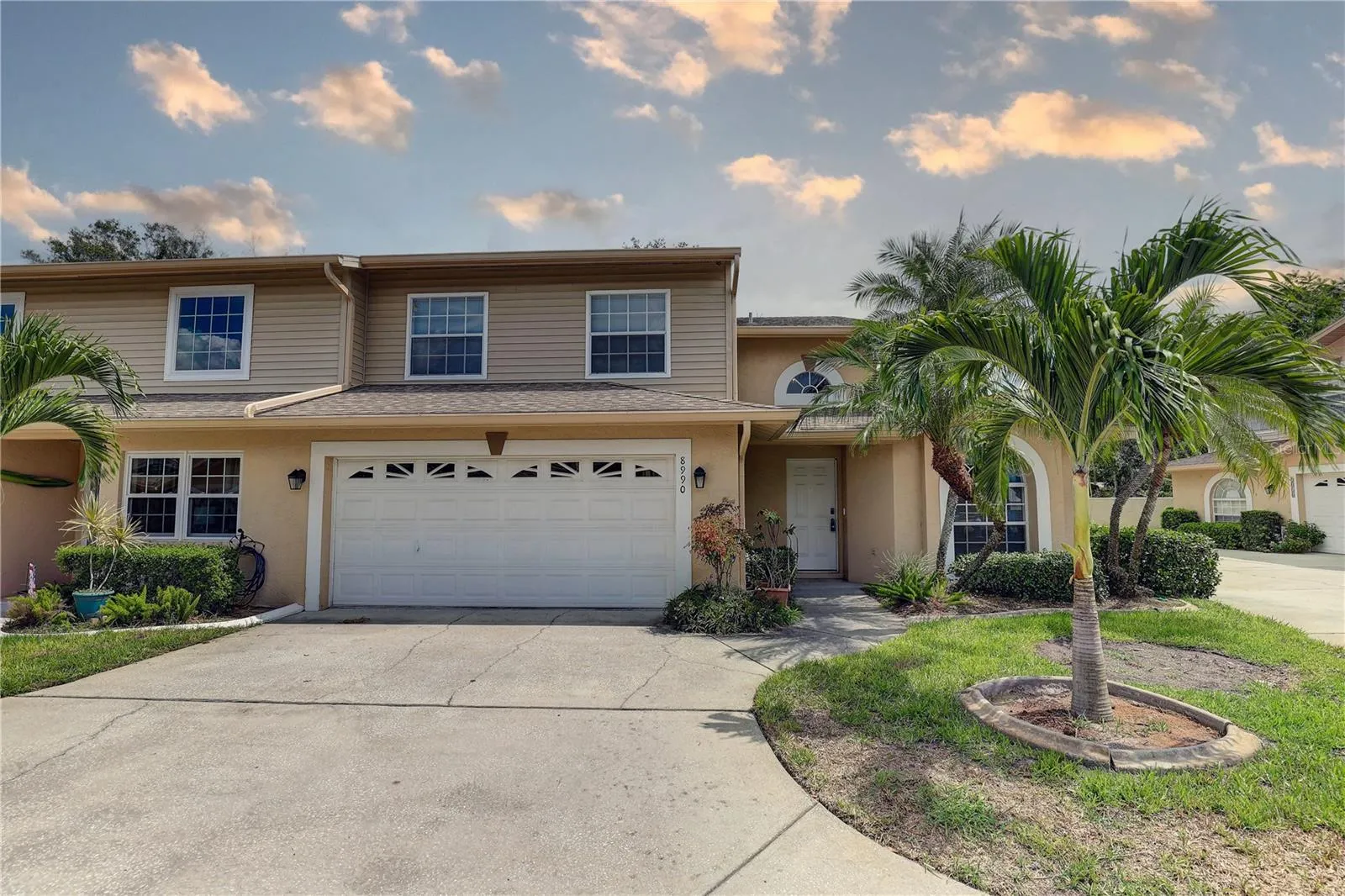 REDUCED $10,000. THIS 3-BEDROOM, 2.5 BATHS (potentially 4 BEDROOMS) END UNIT with FIRST-FLOOR PRIMARY BEDROOM is located in the quieter end of the community, away from the Starkey Rd entrance. You have a 2-CAR GARAGE and over 1,800 sq ft of living space. Upon entering you experience an IMPRESSIVE LIVING AREA with 16′ high ceilings, lots of windows and a 13′ x 14′ loft area. The ground level primary bedroom has a walk-in closet and an ensuite bathroom wih WALK-IN SHOWER . Lots of STORAGE throughout. This townhome is in its ORIGINAL CONDITION and priced accordingly. New AC in 2024, new ROOF in 2012. Block walls provide total soundproofing between units. Ceramic tile in kitchen and baths. Screened porch off the living room with NO NEIGHBORS IN BACK. Stairs and upper story are carpeted. UPSTAIRS 2 bedrooms have large closets and a full bathroom with tub/shower. Also, the upstairs loft/bonus room (12′-6 x 14′-6) could be a sitting room, office/exercise, or converted to a bedroom. SMALL, WELCOMING COMMUNITY, pet-friendly, with only 42 homes and a private road, with no thru traffic and low HOA fees of $325 which includes POOL, cable and internet. CONVENIENT LOCATION close to shopping, beaches, golf course, hospitals and airport.