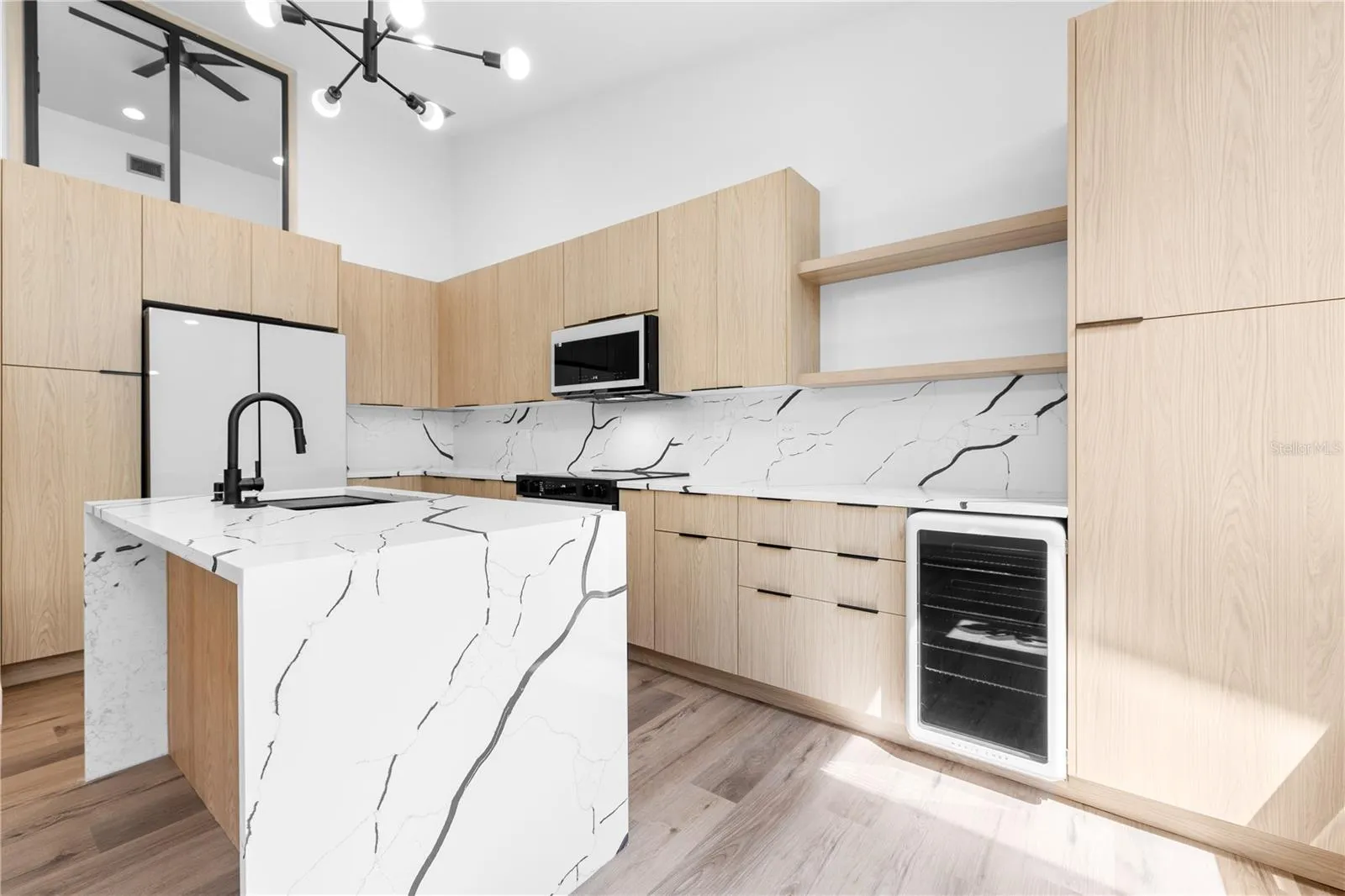 This ALL-NEW MODERN Townhome is tucked away in the peaceful community of Lake Forest. You are welcomed by a BRAND-NEW storm door with a screen and private hallway that leads you to your front entrance of luxury. From there, you will enter a LIGHT & BRIGHT foyer with access to a HUGE laundry room with laundry chute. This space can be used as an office/den/bonus room & offers an additional refrigerator. On the second level you will find VAULTED ceilings with an ABSOLUTELY STUNNING NEW KITCHEN with URBAN soft close cabinetry that offers pull out trash bins, pull out pan & tray holders, white SAMSUNG BESPOKE appliances, QUARTZ countertops, GORGEOUS Waterfall Island, and built-in dry bar with beverage/wine cooler. This area over looks the eat in dining area and living room with a BEAUTIFUL CONTEMPORARY FIREPLACE & 55” SMART TV. Also, bright skylights and 9 ft sliding glass doors with screened-in enclosure leading to the NEW exterior stairs which is PERFECT for any pet lover. The third floor offers a hall linen closet with access to laundry chute. Next up, the guest bedroom with skylight that overlooks the second floor. Then you will find a JACK & JILL BATHROOM with a sleek ULTRA MODERN VIBE layout that acts as TWO full bathrooms. Two NEW separate vanities, two NEW toilets, DEEP soaking tub, and WALK IN shower. Last but not least, the master bedroom with NEW Balcony and OVERSIZED closet. ALL NEW: Roof, Skylights, Electrical Panel, and HVAC. HOA includes EVERYTHING but electric. LARGE DOGS welcome and RESORT STYLE Heated Pool & Spa. Located just across from the community is Forbes Recreation Center with racquetball courts & PICKLEBALL. Helen Howarth Park with peaceful trails, playground, dog park, and youth baseball & softball complex. PRIME LOCATION in Pinellas County with just minutes to Downtown St Pete, Tampa Airport, and our AWARD-WINNING BEACHES. If you are looking for a quality turn key home, look no further!***** NO FLOOD INSURANCE REQUIRED***