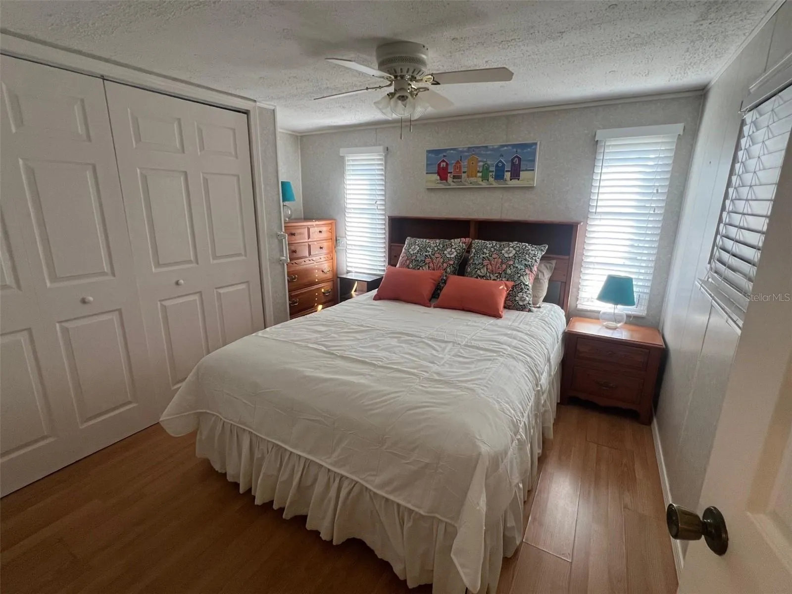 LOW NEW PRICE! Bel Aire Mobile Village offers a peaceful and hospitable environment tailored for residents aged 55 and over. This well-maintained community provides a range of amenities, including a clubhouse for social gatherings, a refreshing swimming pool, and shuffleboard courts for laid-back fun. With an incredibly low maintenance fee of just $212.00/month—covering water, sewer, garbage, and lawn care—residents can enjoy a hassle-free lifestyle. One small pet is permitted to share your home. Situated on a desirable corner lot, this two-bedroom, two-bath home presents an excellent opportunity to experience ease and enjoyment in a setting designed for relaxation and leisure. INTERIOR: This pleasant, fully furnished home features laminate flooring throughout, complemented by vinyl tile in the baths for easy maintenance. The remodeled kitchen is equipped with modern appliances, including a fridge, range oven, microwave, and disposal, along with a designated eating space. Bright paint adds personality to the interior, while six-panel doors, faux wood blinds, and updated windows enhance the style. Well-placed ceiling fans ensure a refreshing breeze in every room. The sizeable living room offers plenty of space for entertainment, while the raised Florida room serves as an excellent extension of the living area. The expansive primary bedroom features extensive closet space, while an en suite bath with a new vanity along with a shower and tub, creates a private retreat. A warm guest bedroom includes a generously sized closet and is conveniently located near the updated guest bath, which exhibits a new walk-in shower. With numerous upgrades, this home is thoughtfully designed for both tranquility and usefulness. EXTERIOR: This well-maintained home features durable vinyl siding and a thoughtfully designed ramp for easy access into the home. A lower, tiled Florida room provides the perfect space to enjoy a blend of indoor and outdoor living. The extended carport, added in 2012, offers ample covered parking, while the shed houses a washer and dryer for added suitability. Central heating, updated 2018, ensures year-round comfort, while the reliable roof-over adds lasting protection. Priced at $119,900 with a share, this property presents an excellent opportunity for those seeking quality and affordability in an embracing community.
