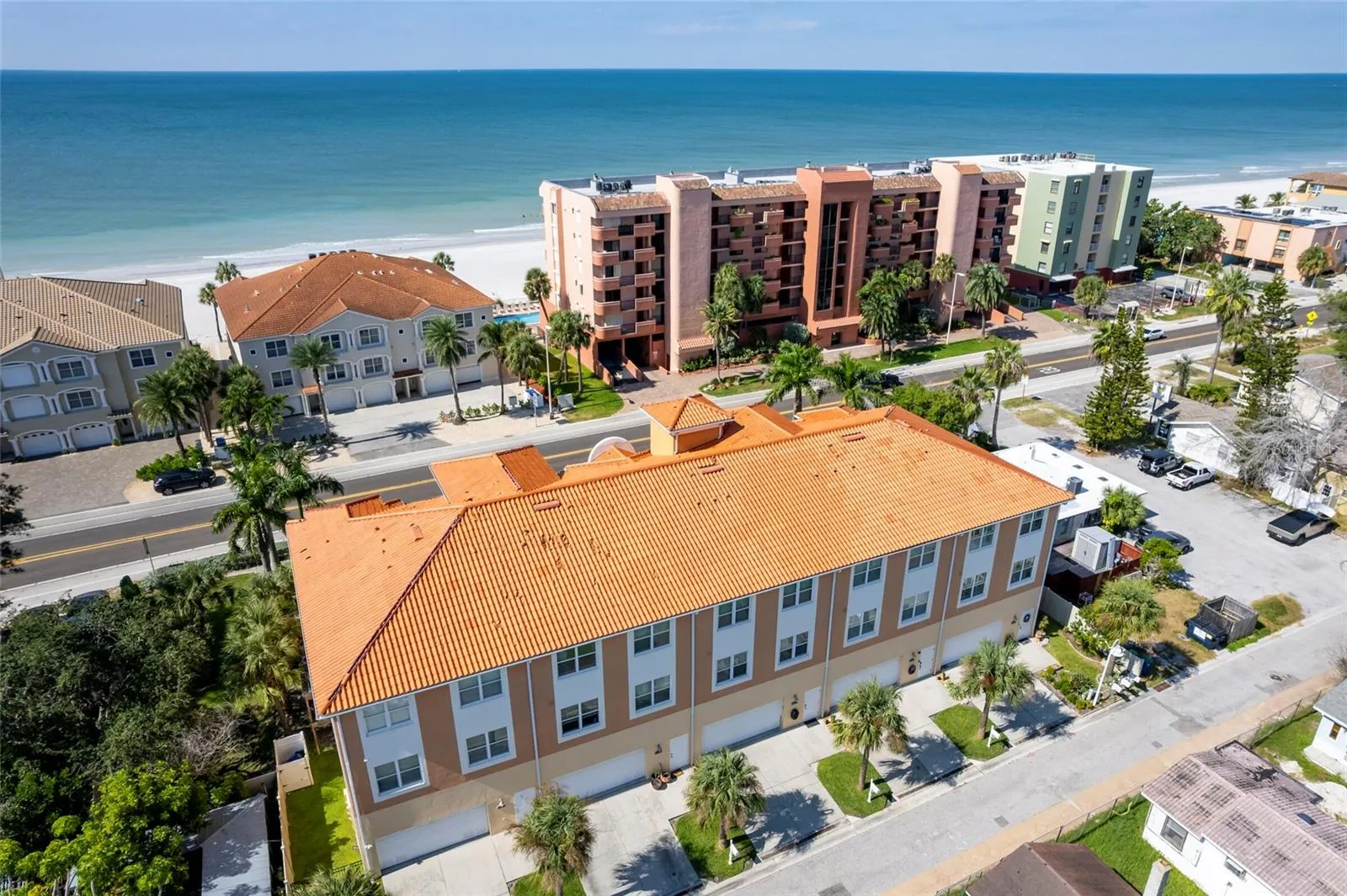 Just steps from the powdery, sugar-white sands of Indian Shores Beach, this extraordinary 3-bedroom, 3-bath townhome is the ultimate expression of coastal elegance and modern luxury. Built in 2005 and thoughtfully updated, this three-story sanctuary is equipped with it’s own private elevator, ensuring effortless access to every level and making beachside living truly seamless. As you enter the open-concept second floor, you’re greeted by a sun drenched, airy living space that flows naturally into a generous dining area-perfect for hosting lively gatherings or intimate family dinners. The chef’s kitchen is a culinary dream, featuring gleaming stone countertops, premium stainless steel appliances, a dedicated wine refrigerator, and abundant cabinetry for all your entertaining needs. Just off of the kitchen, a convenient laundry area adds to the home’s practical design. This level also offers a spacious guest bedroom complete with a king size murphy bed, a flexible den ideal for a home office, sitting area or creative studio, and a full bath with both a shower and tub-perfect for guests or family. Throughout the home, elegant ceramic tile flooring highlights the refined finishes and thoughtful architectural details that set this property apart. Ascend to the third floor and discover the primary suite-a true retreat. Here, you’ll find a spa-inspired en suite bath with long stone covered vanity with dual sinks where you can immerse yourself in the luxury of a soaker tub or if you prefer to step into the luxurious tiled walk-in shower, creating a serene oasis for relaxation. An additional guest bedroom with an en suite bath where your guests can pamper themselves with a classic pedestal sink and shower and tub combination. Direct balcony access offers the flexibility to serve as a cozy den, office, or tranquil reading nook. Step outside onto your private balcony and be captivated by sweeping ocean views and sunsets that paint the sky in breathtaking hues-an everyday luxury that never loses it’s magic. The home’s 3-car garage provides ample space for vehicles, beach gear, and storage, while hurricane impact windows and smart home features deliver peace of mind and modern convenience. Recent upgrades including a new upstairs HVAC condenser (2021), air handler coil replaced (11/2024), downstairs air handler and compressor new 10/2025, a water softener and a 50 gallon water heater to ensure this home is built for comfort. Well appointed furnishings are negotiable! Perfectly positioned just across the street from the beach and a short stroll to local favorites like Shores Coffee Shop and Salt Rock Grill, this townhome offers the best of coastal living-effortless, luxurious, and unforgettable. Live the dream and make every day a beach day in this remarkable Indian Shores retreat.