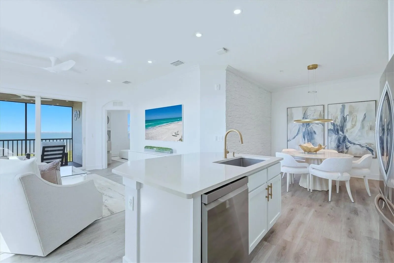 Magnificent, unobstructed views of the Manatee River from one of the most desirable buildings in Tidewater Preserve. This top-floor “Carolina” floor plan is among the community’s most sought-after layouts, offering three bedrooms, two baths, and an open-concept design that showcases the water from the main living areas. As a penthouse residence, this unit features higher ceilings and the added privacy of no neighbors above. The spacious living and dining areas flow seamlessly into the kitchen, creating an ideal layout for both everyday living and entertaining, all oriented toward the expansive river views. Large sliding doors open to a screened balcony with tile flooring, no-see-um screens, and roll-down shades providing a comfortable outdoor living space to enjoy the weather, sunsets, and dolphins year-round. This condominium has been extensively upgraded throughout. Improvements include luxury vinyl flooring, quartz countertops, updated paint, designer fixtures, custom backsplash, stone-accent wall, added cabinetry in the laundry room, custom closet systems throughout, new appliances, motorized window treatments, glass enclosed tub, new glass shower door, 5-inch baseboards, and solid wood interior doors with upgraded hardware and hinges. Light switches, plates, and fixtures have also been replaced for a cohesive, updated look. Smart home features include an integrated door lock system, Ring doorbell, and smart thermostat. Ideally positioned just steps from the community pool and fitness center, the building is also adjacent to a lake suitable for fishing. Tidewater Preserve is a gated waterfront community offering a private marina with direct access to the Manatee River and Gulf waters beyond. Amenities include two clubhouses, three pools, two fitness centers, a community room with catering kitchen, billiards, indoor and outdoor gas fireplaces, three Har-Tru tennis courts, canoe and kayak launch with storage, and a scenic nature trail along the river. The community also features 24-hour security and an on-site lifestyle director. Lawn and landscaping are maintained throughout. HOA fees are modest, there is no CDD, and association dues include water, flood insurance, internet/WiFi, and cable services. Schedule your private showing to experience this exceptional waterfront residence.