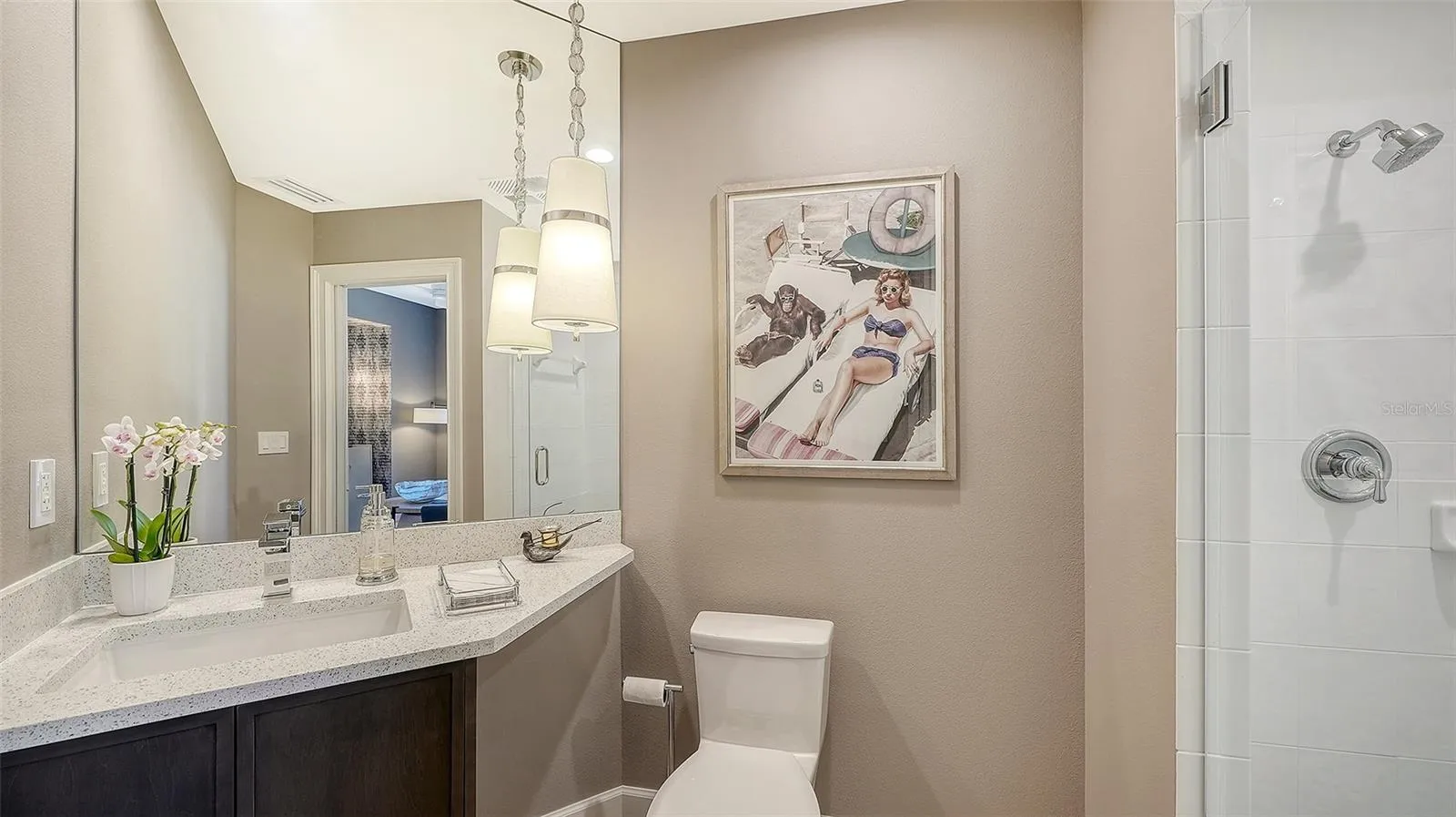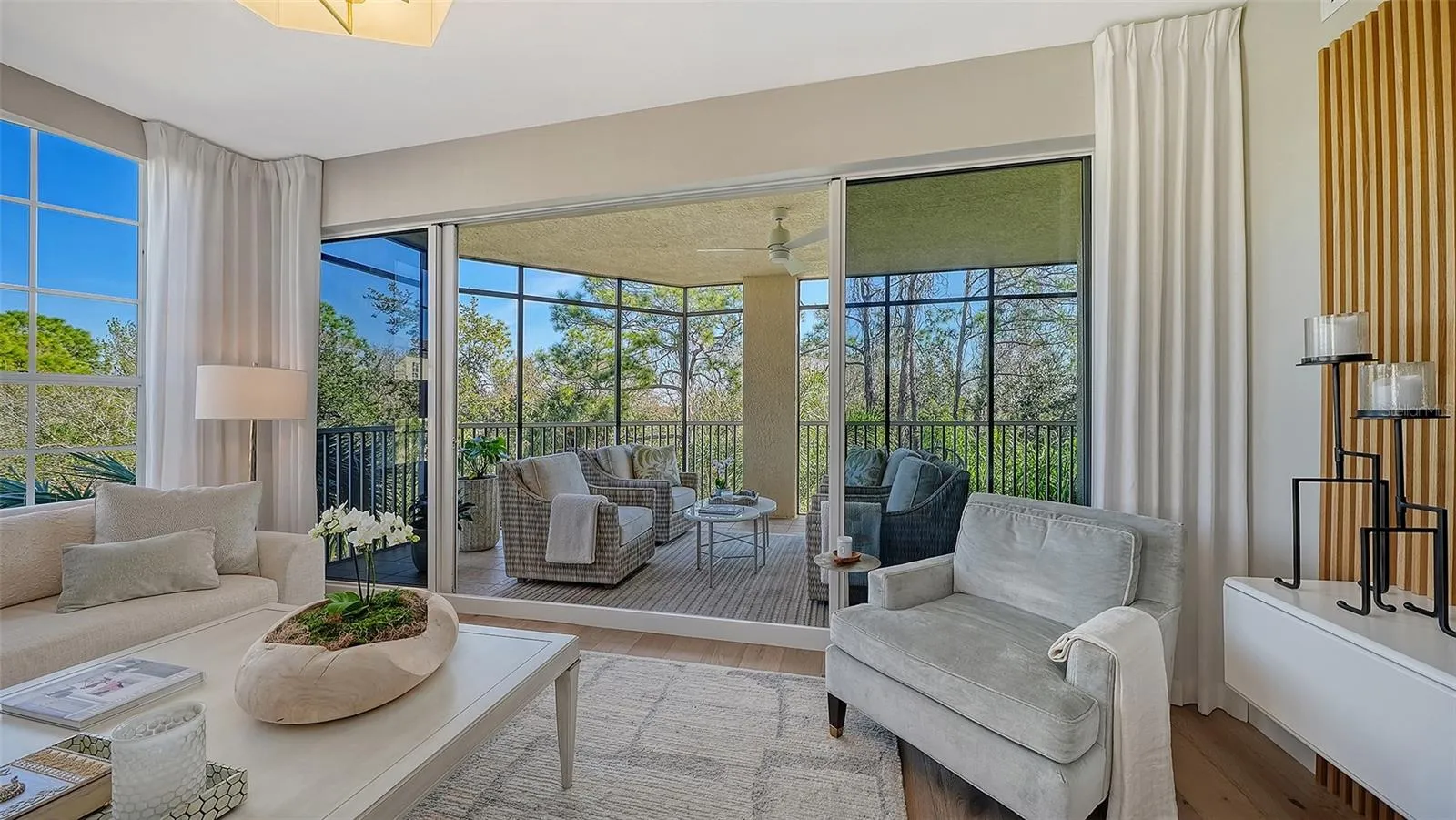 Luxury condo living at its best!! Welcome to this completely renovated and updated home with elegant “on trend” finishes throughout. The lifestyle of your dreams awaits for the buyer with discriminating taste who wants the “magazine-worthy” residence of refinement. You will only believe it when you see it! From floor to ceiling in every room, exquisite upgrades featuring high-quality quartz counters, sleek wood cabinetry, all new stainless steel appliances, elegant European white oak engineered hardwood flooring, gorgeous interior doors and hardware, smooth ceilings, newly painted throughout, everything top notch right up to the new vents in the ceilings. You will marvel at the beautiful pristine and picturesque preserve view offering privacy and a sanctuary of relaxation and comfort. The kitchen is the heart of the home and a gourmet dream, bright and cheery, and equipped with all top notch Bosch appliances, designer backsplash, sleek cabinetry with pullouts and drawers, under cabinet lighting – all appointments customized to perfection. Luxuriate in the Master Suite fit for royalty with custom walk-in closets, built-in cabinetry, and a master bath ideal for spa-like pampering. Spacious living space opens to terrace with the perfect tranquil backdrop for private outdoor entertaining with friends and family. Guest bedroom is ensuite where you and your guests can indulge themselves in comfort. Den with full bath could flex as 3rd bedroom – simply add a closet. New A/C October 2025. Two-car garage that is huge and perfect for storing valuables or working on projects. Stunning, graceful, immaculate, and elegant best describes what has been created here. Imagine a home that has the absolute best of everything. This is it! You have found your dream home! This unforgettable condo is located in the meticulously maintained and gated Watercrest Enclave in Lakewood Ranch, a stone’s throw from LWR Main Street Shopping District, UTC Mall, pristine beaches, hospitals, etc. Residents of Watercrest enjoy a resort-style pool, secured lobbies, newly renovated Clubhouse with Board Room and Fitness Center. Enjoy the sophisticated lifestyle you deserve and make your appointment today for a private tour of this exquisite masterpiece!