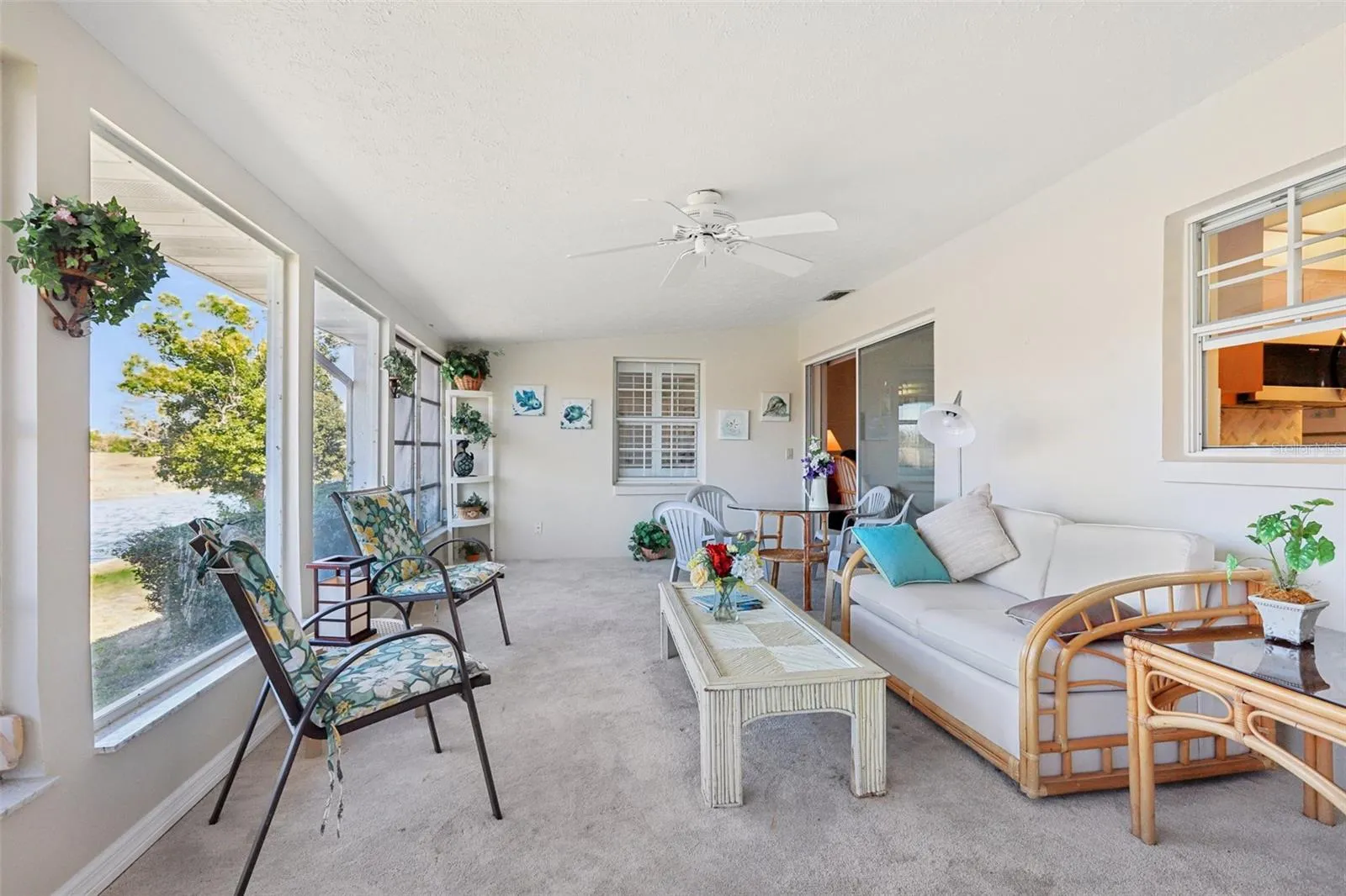 Welcome to your fully furnished Florida retreat in the highly desirable St. Andrews Estate section of Sun City Center, where stunning pond and golf course views create the perfect backdrop for relaxed living. This beautifully maintained 3-bedroom, 2-bathroom home welcomes you with a spacious entryway flanked by a formal dining room on one side and a large sitting room on the other, setting the tone for the home’s open and inviting layout. As you continue through the home, a second living area leads to a large enclosed Florida room, ideal for entertaining or simply enjoying peaceful water and golf course views year-round. The spacious primary suite features three closets and an en-suite bathroom with a standing shower, while the secondary bedrooms are generously sized for guests, a home office, or a den. The kitchen is equipped with granite countertops and an extra-large pantry, offering both style and functionality, and an additional storage room just off the garage provides even more convenience. With abundant storage throughout and move-in-ready furnishings included, this home offers comfort, space, and scenic beauty. You’ll love Sun City Center with its amazing facilities, pools, and clubs just waiting for you to enjoy. Nestled between Sarasota and Tampa, this location offers a convenient ride to airports, great shopping, dining, and professional entertainment. With easy access to award-winning, sandy beaches, this home provides the best of all worlds without the stress of big city life. Leave it all behind and enjoy your new life here in one of Florida’s most affordable 55-and-better communities!