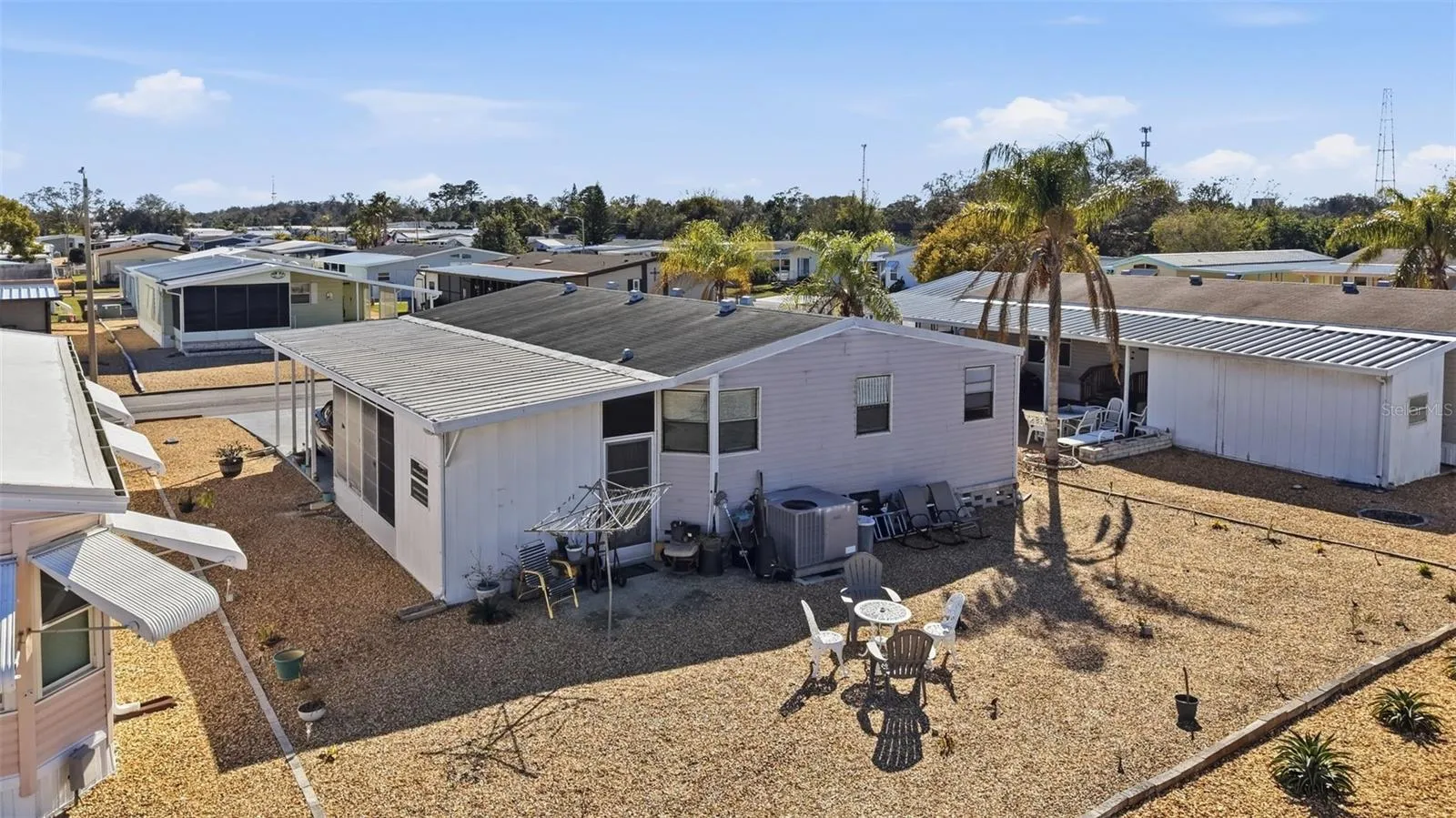 Come and check out this pretty home in the highly sought after Ponderosa Park where homeowners enjoy an active lifestyle with a true community feel!! Let’s not forget, you own the land your home is on so no surprises here with lot rent hikes!! Step inside and be delighted with this oasis’s and it’s jaw dropping, gorgeous, tiled floor that will capture your imagination the minute you walk in! Large dining room area with cabinets galore, open concept to kitchen, dining and living room. And let’s not forget the laundry room is inside this home!! Kitchen itself has many cabinets and an island that will seat two more so no one missing a thing! Plenty of room here for your culinary skills indeed! Nice size master bedroom with walk in closet and a bathroom with plenty of space that boasts a separate shower and toilet from its sink with sitting or make up staging area. There is also a brand-new mini split in the living room to help drive down costs, and so much more to see and enjoy!! Portion of the carport is enclosed with a separate shed/storage area so plenty of room! Come and see for yourself before it is gone as this piece of paradise won’t last long! So close to amenities such as restaurants, shopping, medical, beaches and Tampa airport less than an hour away!! Perfect location with so much to love!!