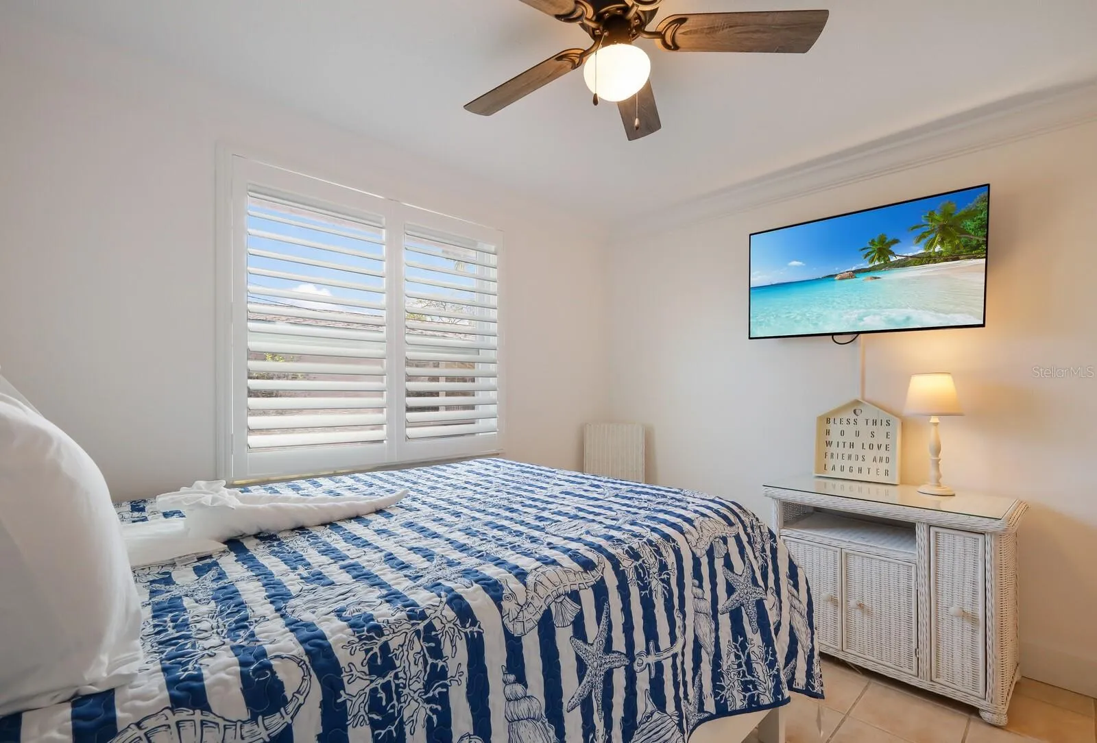 Welcome to your slice of Island Life! Watercolor Palms is an active vacation rental villa in Seaside Gardens with 2 beds / 2 baths, a spacious open floor plan, turn-key furnished with coastal Island flair, interior laundry room, with an enclosed Florida room that has a pullout couch so it sleeps 6. Recent updates include a new metal roof in 2023, new back yard fence for outdoor privacy, updated interior kitchen counters, paint, trim, and furnishings. The front has a paver lined driveway with a 1 car carport, additional parking, and a storage closet for beach accessories. This community is excellent for year round living or a tranquil escape for “snowbirds”, and also allows for short term rentals with future bookings already in place for new owners. No stairs, easy access, pets allowed. Just pack a bag to start enjoying Island Life, and generate income when you are not using your villa! Close to the boat ramp, tennis / pickleball courts, basketball court, dog park, and only a short walk to the beautiful sugar sand beaches of Anna Maria Island.