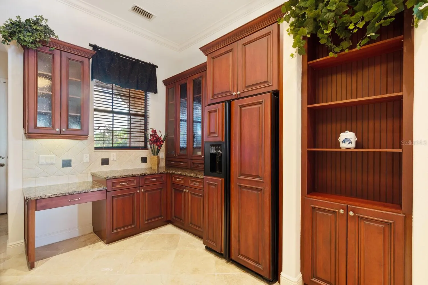 - Ceiling Fans(s), Crown Molding, Thermostat, Walk-In Closet(s), Eat-in Kitchen, Kitchen/Family Room Combo, Primary Bedroom Main Floor, Window Treatments, High Ceilings, Stone Counters, Solid Surface Counters, Tray Ceiling(s)