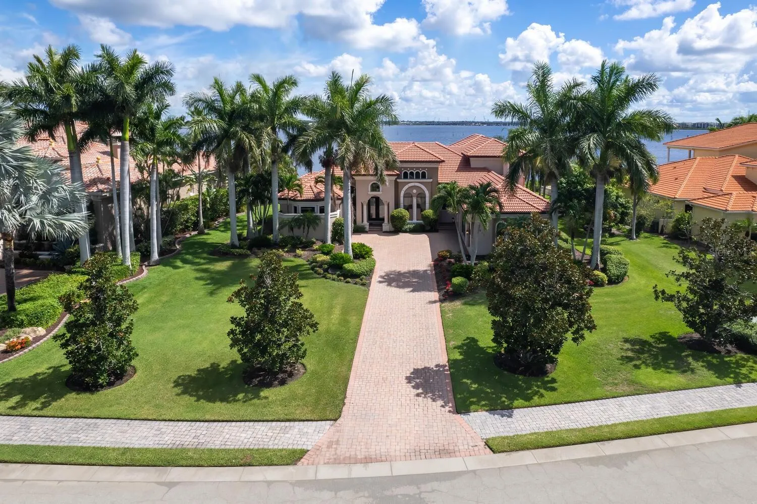 Privately positioned on Hawk Island, a gated peninsula that hosts only a select few waterfront estate homes, this offering is rarely available. Situated on over 1/2 acre directly on the expansive Manatee River, this 4 bedroom / 4 full bath home plus den is almost 4,300 square feet under air-conditioned space with an expansive rear lanai and 3 car garage. Sparingly lived in as a secondary residence, this Mediterranean inspired home welcomes you with beautiful mahogany doors with leaded glass details and opens into the formal living room with 10′ sliding glass doors widening your water view. The separate dining room impresses with an 18′ tower ceiling, tray ceiling and crown molding. Thoughtfully planned, the primary suite is on the first floor and sits adjacent to dedicated Den with double French doors. An elegant primary bath is on point with a roman shower with aquarium glass looking out to a quaint courtyard. The separate soaking tub, coupled with double vanities adorned with rich cabinetry, his and her water closets finish this elegant retreat. Entertaining is a treat with a warm toned kitchen with seeded glass cabinetry, a tumbled marble backsplash, stainless appliances and built-in desk area make this a creative space for chef in all of us. A large, raised island connects the kitchen to the breakfast area family room for larger gatherings. The family room boasts two (2) disappearing sliding glass corners, seamlessly blending the indoors with the outdoor spaces. Two private suites complete with walk in closets complete the downstairs space along with a pool bath. Sweeping views of the massive Manatee River are breathtaking from the pool and spa area complete with an extended lanai area and outdoor kitchen. The water enthusiast will love the second level with a massive bonus / game room with sliders out to large balcony. Finished with a full bath and bedroom, the second level will become the oasis for your guests. There is an observation deck out to the river, great for fishing or just watching the boats go by. The protected water dock with lift is located across from the front of the home and offers access to the open waters of the Gulf of Mexico. Whether you are a water enthusiast, avid boater or just enjoying the quiet of a secluded, gated community, 3815 Hawk Island Drive offers a rare opportunity to live the ultimate waterfront lifestyle.