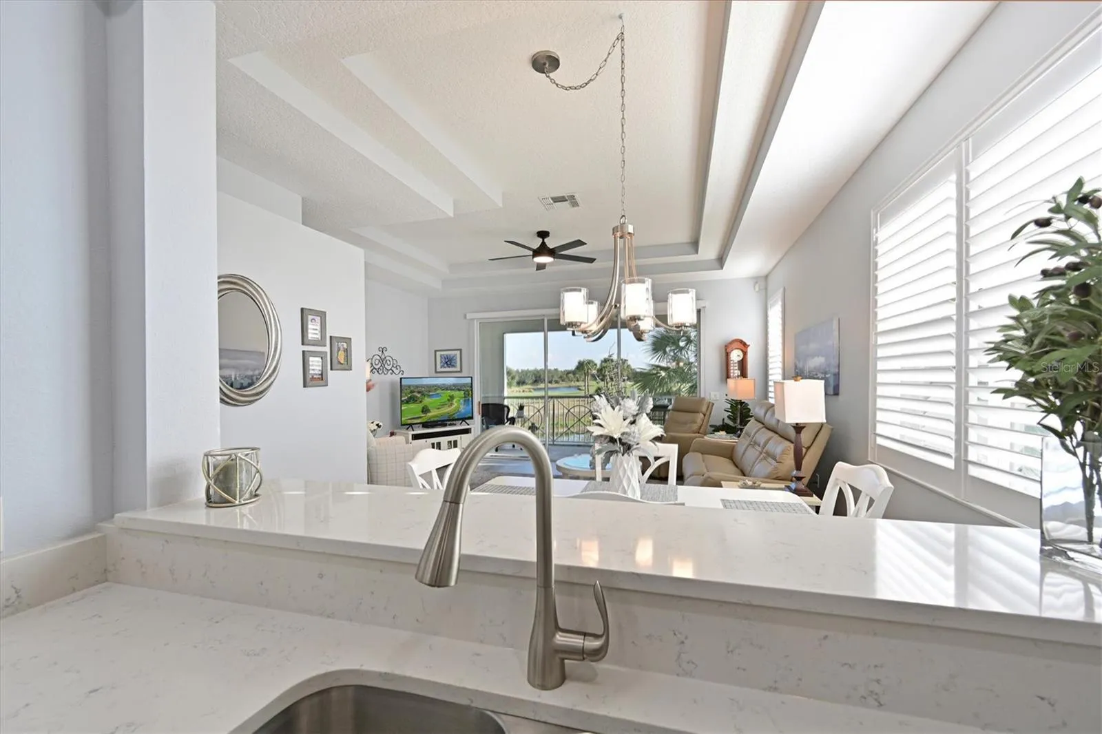 - Ceiling Fans(s), Living Room/Dining Room Combo, Primary Bedroom Main Floor, Split Bedroom, Window Treatments, Stone Counters, Solid Wood Cabinets, Tray Ceiling(s)