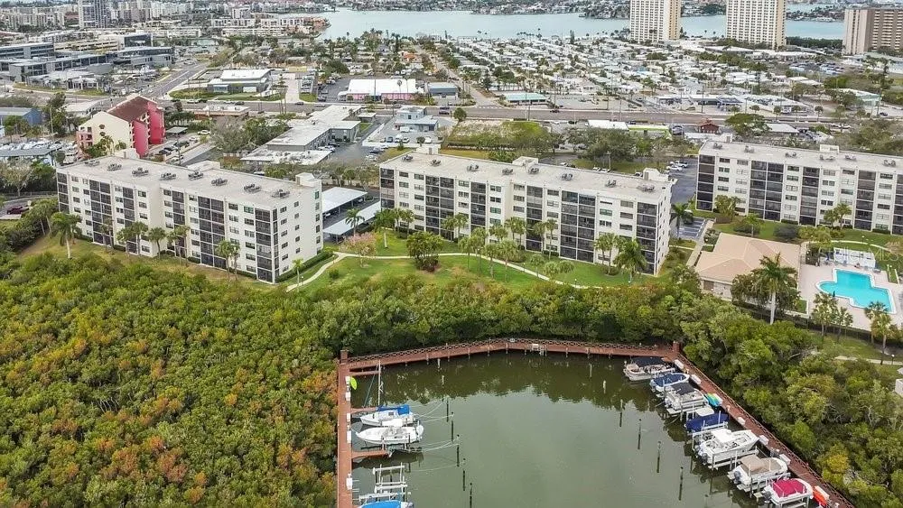 AN EXCEPTIONAL AND AFFORDABLE CHANCE FOR ALL AGES TO OWN A SLICE OF PARADISE IN A FIRST-FLOOR UNIT LOCATED WITHIN THE SECURE, RESORT-STYLE, WATERFRONT COMMUNITY OF PASADENA COVE — A TRUE EMBODIMENT OF IDEAL FLORIDA LIVING! Start each day by witnessing stunning sunrises while relaxing on your screened BALCONY that offers serene views of the marina waters and beautifully maintained green spaces. This location is perfect for pet owners, and you’ll appreciate the COVERED CARPORT SPACE #366 right by your front door, eliminating concerns about elevator outages or climbing stairs. Plus, the clubhouse and pool are conveniently positioned nearby! The generously sized master bedroom boasts an ensuite bathroom equipped with a step-in hybrid tub/shower and a walk-in closet. Throughout the unit, you’ll find tile and laminate flooring, a full-sized WASHER/DRYER in a private laundry area, an oversized water heater, ample closet space, and an extra storage locker in the building. All mechanical systems have been under home warranty and remain in excellent working order. EV charging stations are available, along with options for storing bikes, boats, and trailers. Additional community features include a heated pool and spa, shuffleboard courts, a pond with a tranquil fountain, a renovated clubhouse hosting social events, a fitness center, billiards room, and a private marina where DEEP WATER BOAT SLIPS can be rented or purchased as available. As you wander through the impeccably maintained grounds, you’ll find numerous convenient amenities nearby, plus easy access to pristine Gulf beaches, Tampa International Airport, and the lively downtown areas of Gulfport and St. Petersburg. PETS ARE WELCOME, 90-day rentals are permitted, and the low HOA fee covers almost everything—including building insurance, water, trash, sewer, cable TV, and internet. For added reassurance, THE MILESTONE INSPECTION HAS BEEN COMPLETED, WITH THE REPORT READY AND NO FUTURE ASSESSMENTS and no flood damage from the recent storms. Don’t miss this rare opportunity—schedule your viewing today!