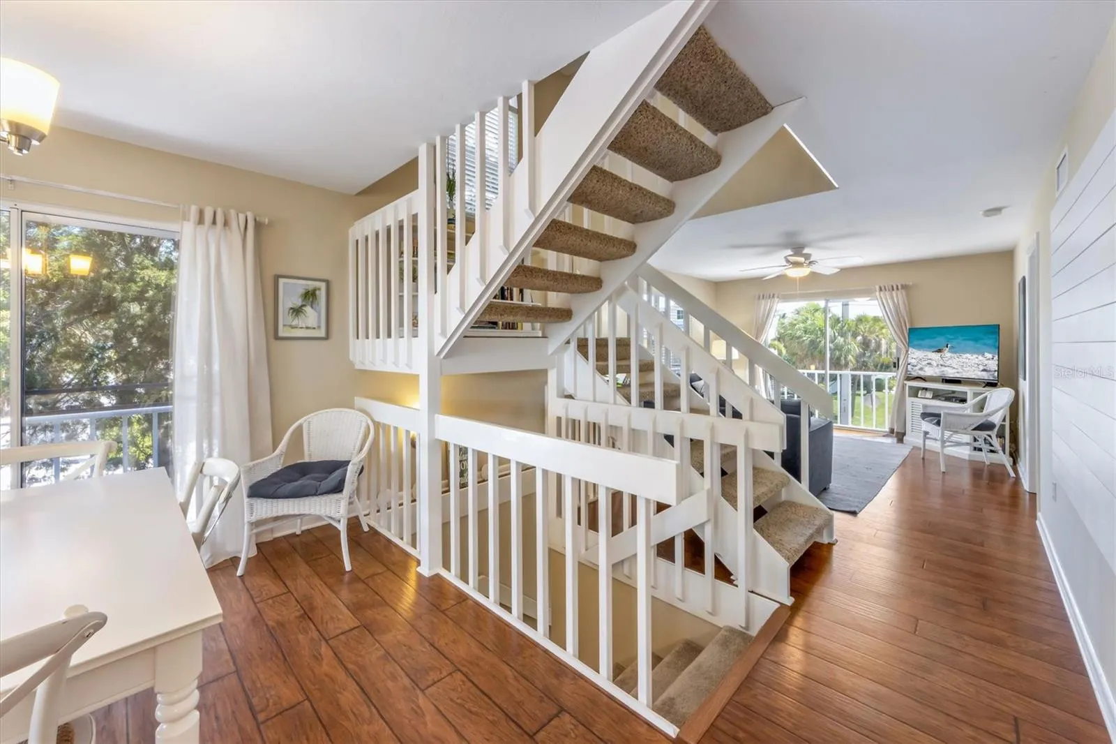 Welcome to your private retreat with a perfect blend of tranquility and island charm. Featuring this 3 bedroom, 2 bathroom townhome in North Beach Village that is SO close to the Gulf of Mexico beaches. Enjoy its laid-back beach vibe and old school Florida community feel. Offered furnished ready for you to move in and enjoy the light and airy color palette to the tasteful beach-themed decor that captures the essence of coastal living. The open-concept living spaces are designed for comfort and relaxation, perfect for family gatherings. You may find yourself spending most of your time relaxing on the spacious screened porch off the wraparound balcony, feeling the gulf breeze and listening to rustling palm trees. So many opportunities here- either a place to call home year round, seasonal getaway or vacation rental property- short term weekly rentals allowed! There is an attached 2 car garage with plenty of additional parking in the driveway, 2 storage rooms and only steps to the community pool that is included in your HOA fee. Recently refreshed landscaping with drip irrigation, newer laminate flooring, updated primary walk in shower and vanity and more! Centrally located in the heart of Holmes Beach on Anna Maria Island, it is close proximity and deeded access to pristine beaches, local eateries, boutique shops, and vibrant community events. Schedule your private showing!