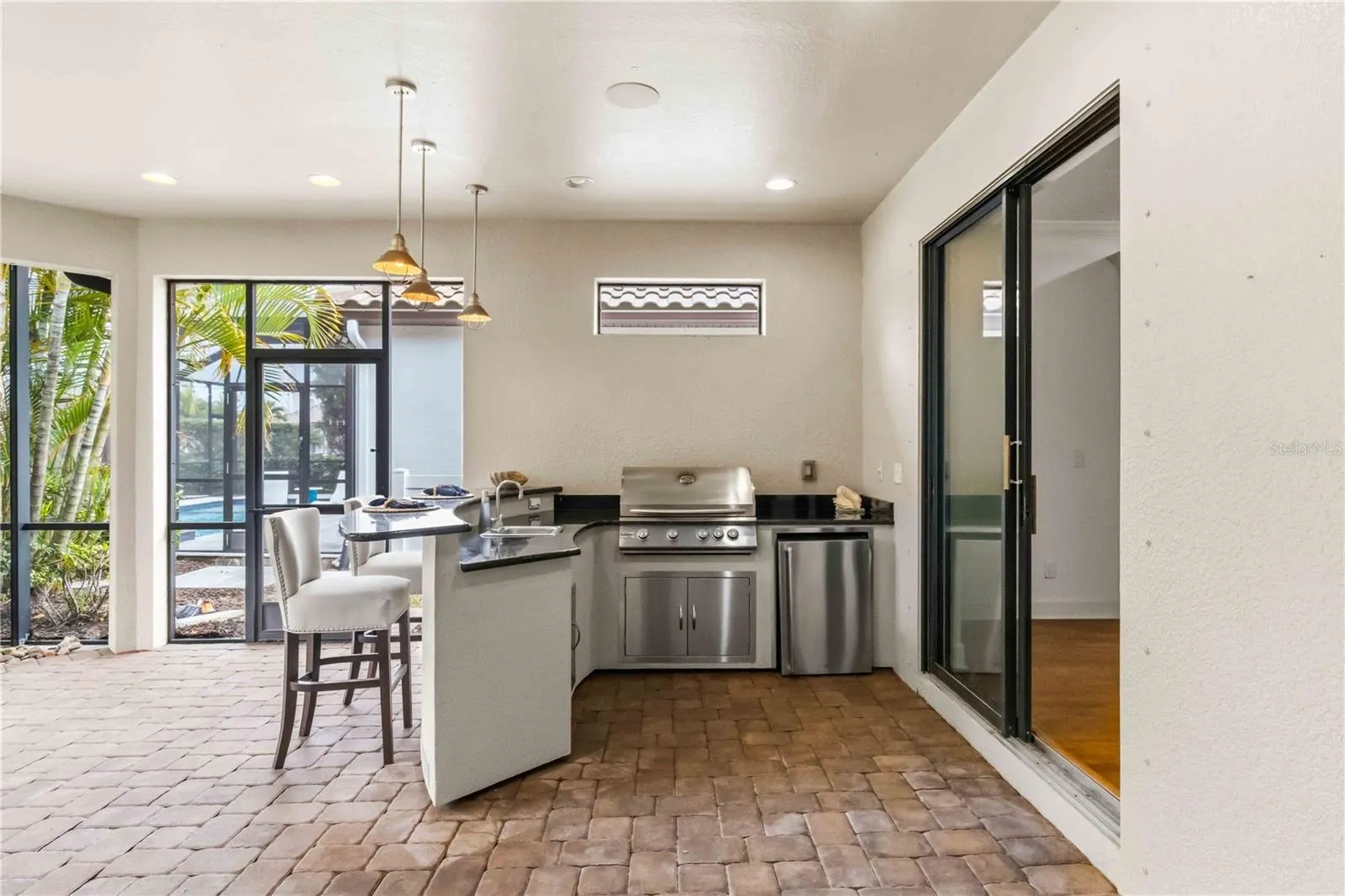 - Lighting, Sidewalk, Sliding Doors, Hurricane Shutters, Outdoor Grill, Outdoor Kitchen