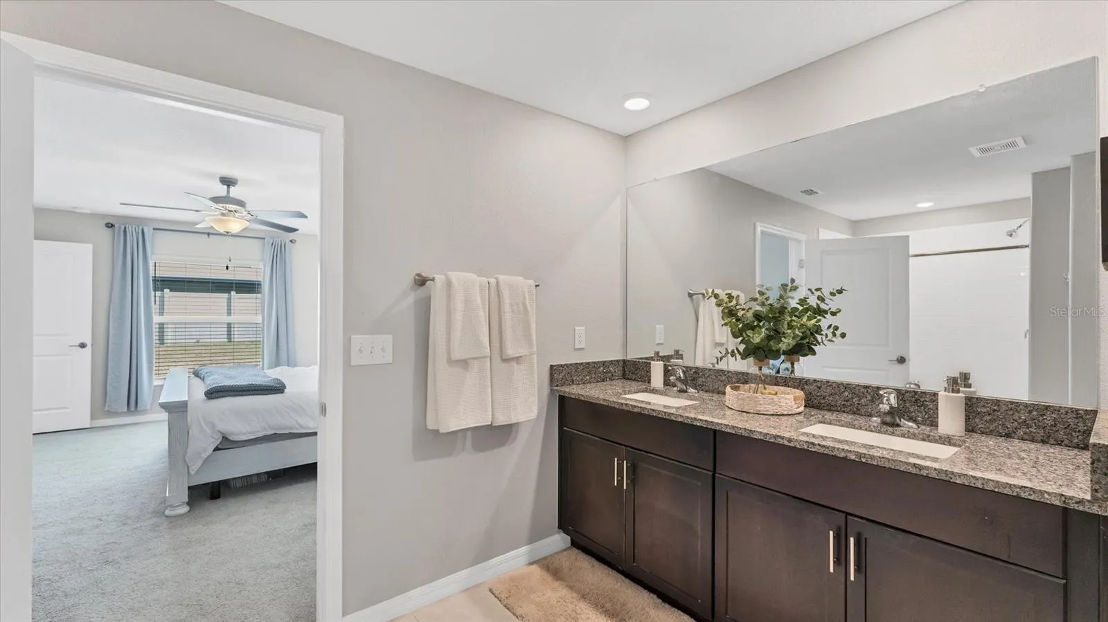 The private owner’s suite features generous space, a custom walk-in closet, and an ensuite bath with granite countertops and a walk-in shower. Secondary bedrooms are well-sized and versatile, with additional flex space ideal for a home office or guest room.