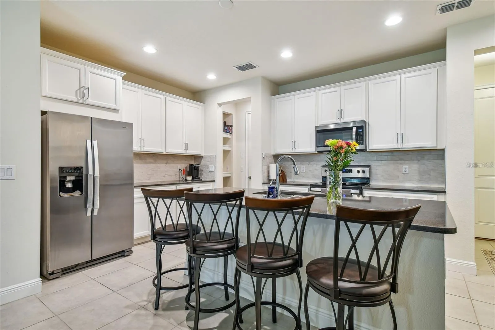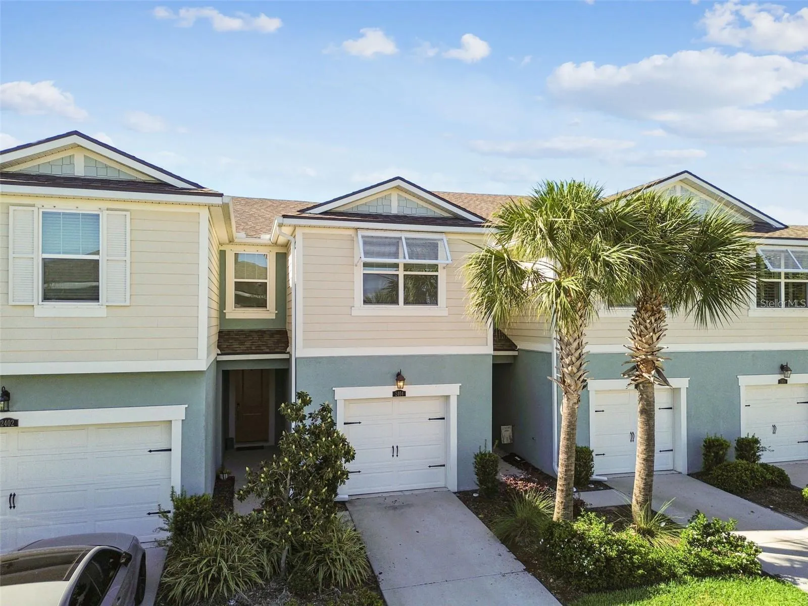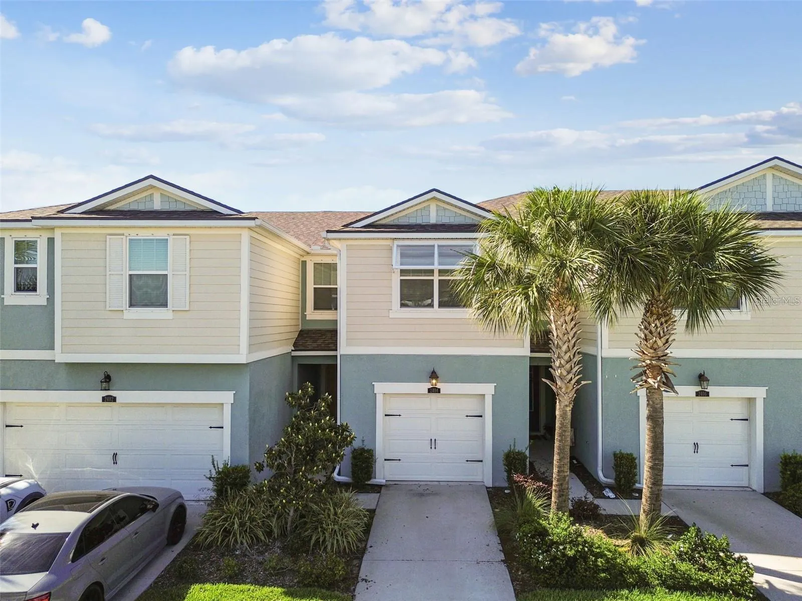 Welcome to your dream home in the sought-after Bayside Terrace community of Oldsmar! This newer, spacious almost 1900 sq. ft. 2-bedroom townhouse with a HUGE LOFT/BONUIS SPACE offers a perfect blend of comfort, style, and convenience. The idyllic location provides easy access to amenities, parks, shopping, dining and more, with serene water views adding tranquility to your everyday life. Step inside to discover a modern kitchen featuring elegant white shaker cabinets paired with luxurious quartz countertops, a large walk-in pantry, and stainless steel appliances that are only 5 years old. Stylish tile floors flow throughout, offering durability and easy maintenance. The main level boasts cathedral ceilings, while the bedrooms feature elegant coffered ceilings. The upstairs split floor plan includes two master bedrooms, each with double sinks, linen closets and large walk-in closets. Large 8-foot sliding glass doors flood the home with natural light, creating a bright and inviting ambiance. One of the best features of this townhouse is the spacious loft, offering versatile space for a den, office, gym, or game room. The community exudes a resort-style ambiance with a