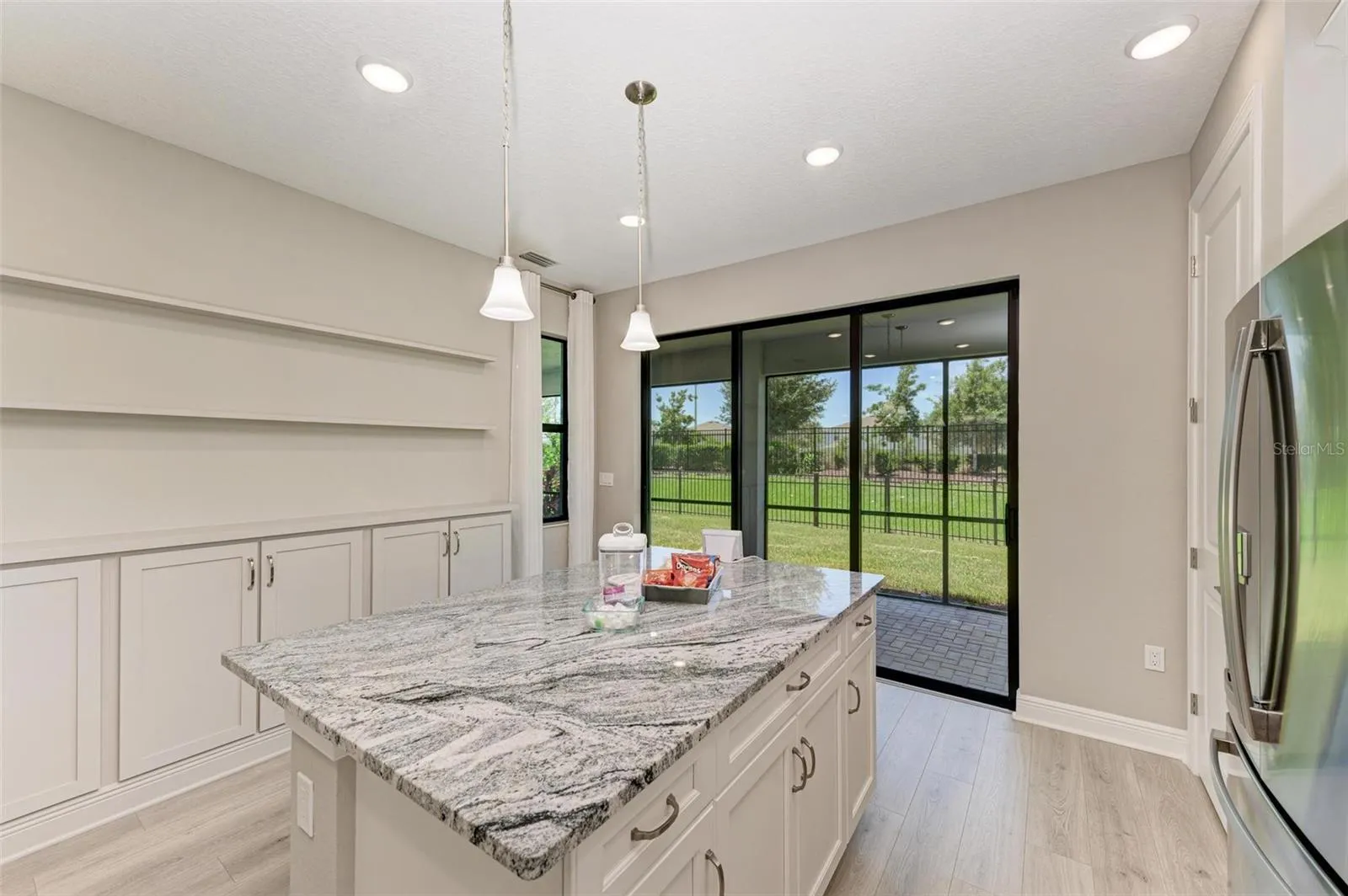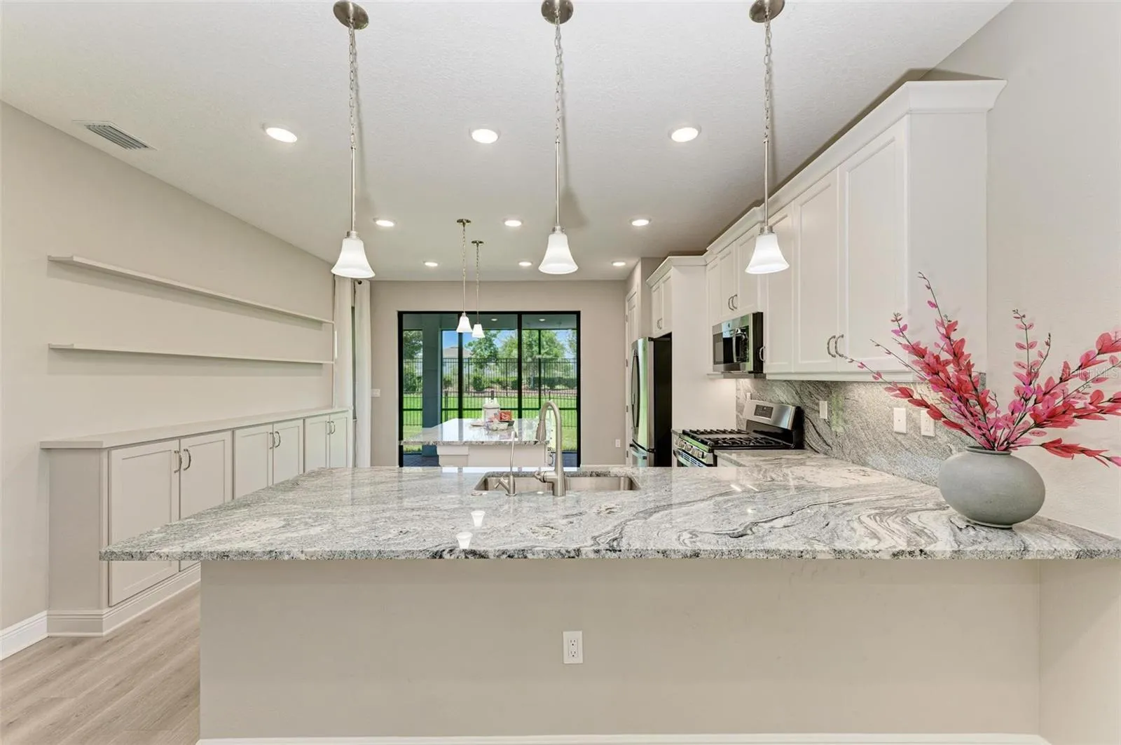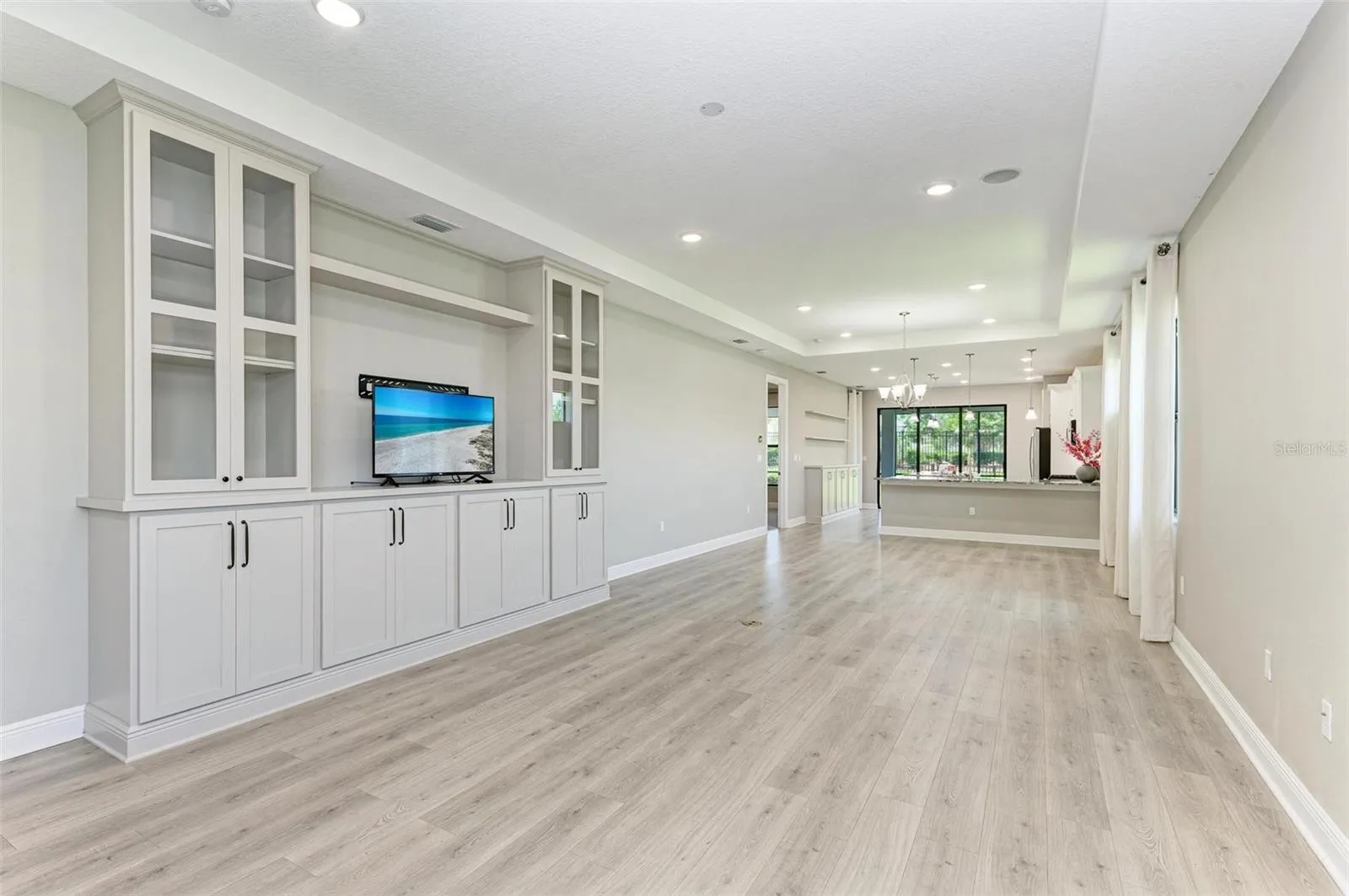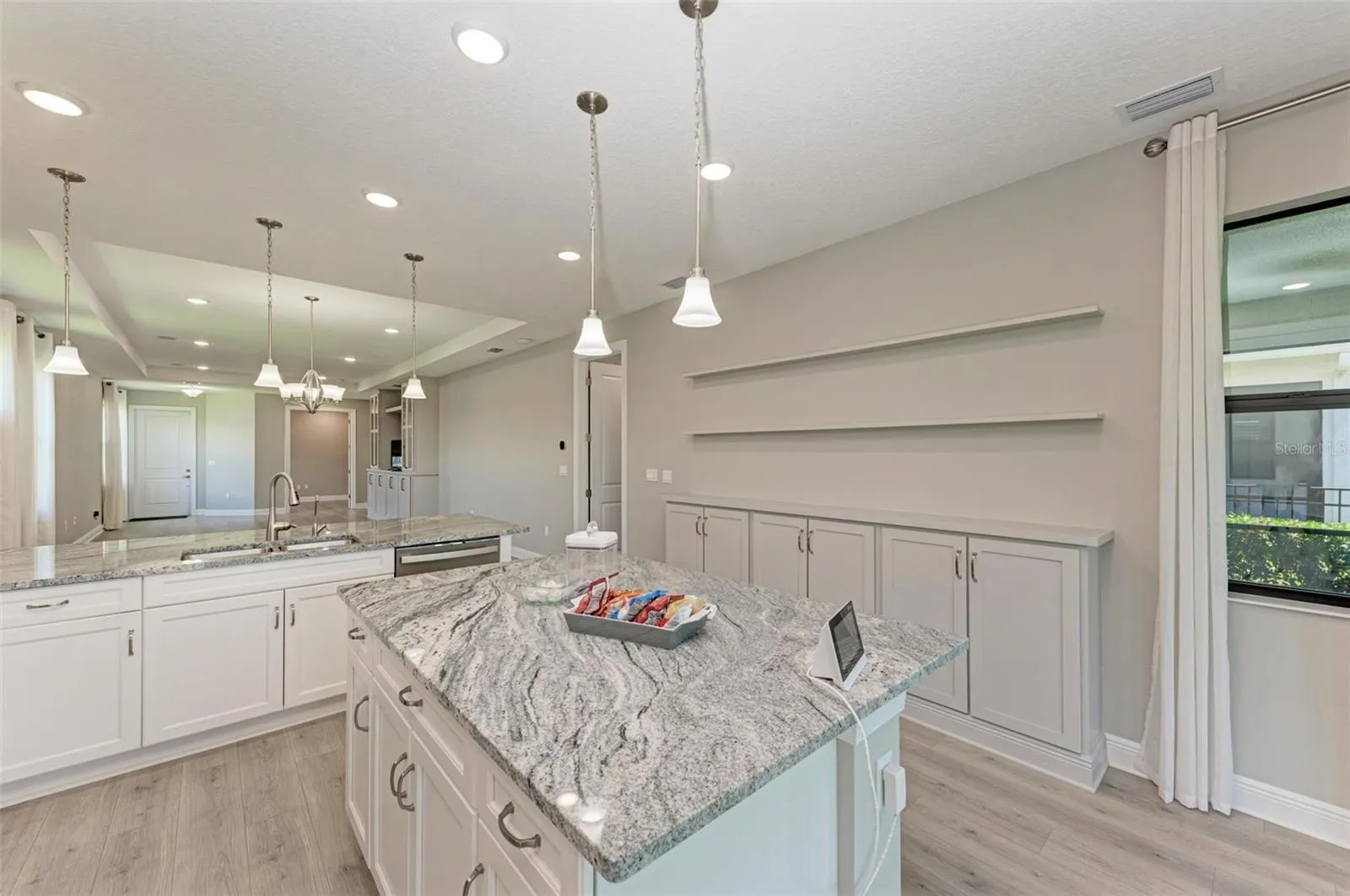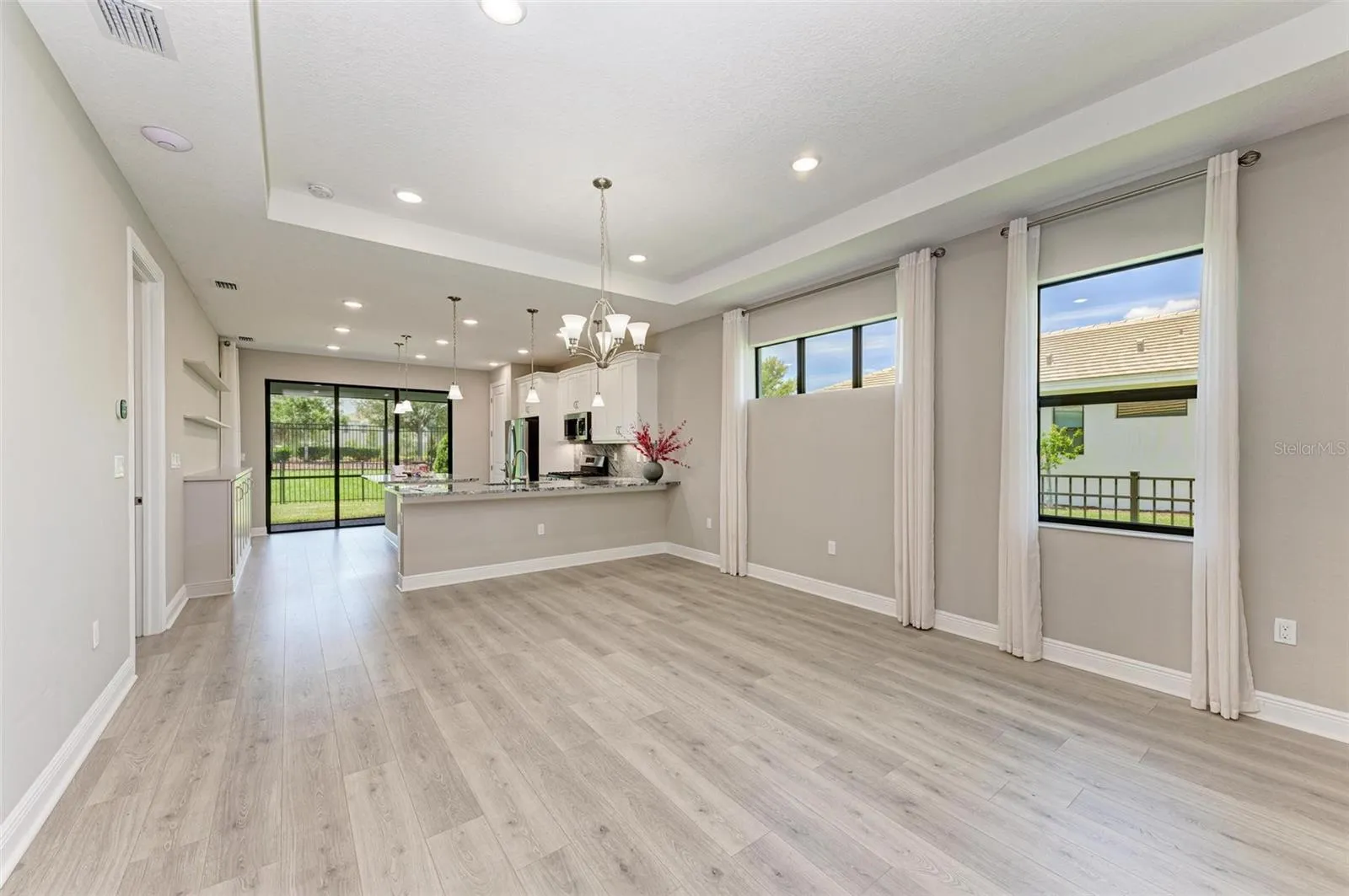 - Open Floorplan, Walk-In Closet(s), Living Room/Dining Room Combo, Kitchen/Family Room Combo, Split Bedroom, Window Treatments, High Ceilings, Stone Counters, In Wall Pest System, Tray Ceiling(s), Built-in Features