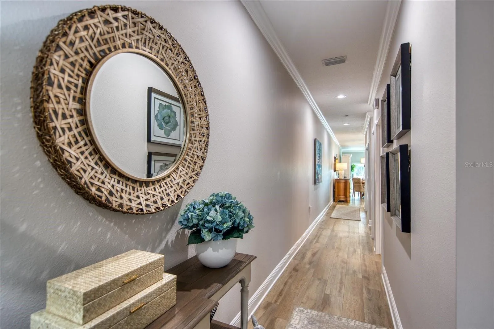a luxurious tiled walk-in shower. Every detail, from the crown molding to the top-of-the-line finishes, exudes sophistication. Convenience meets luxury