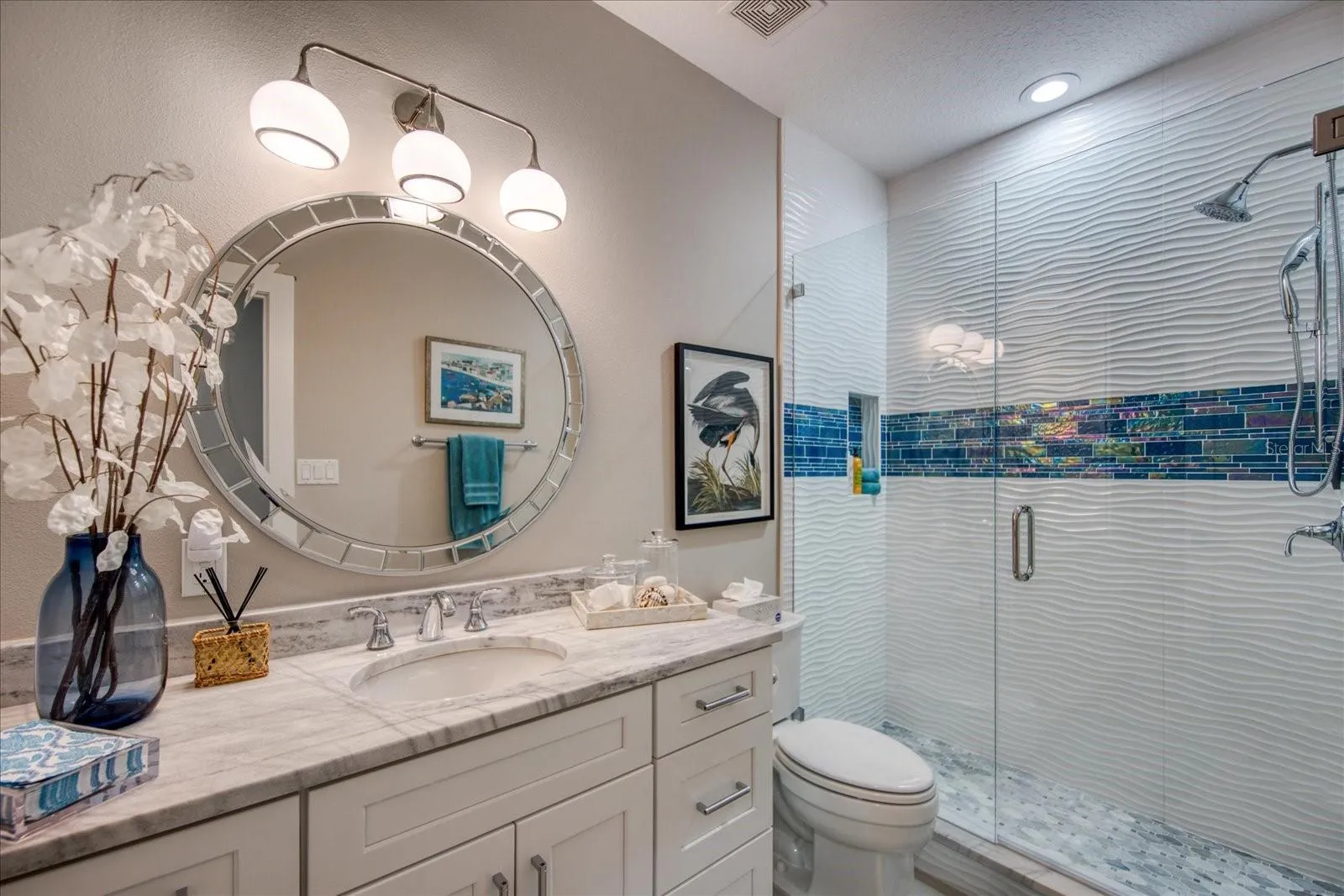 master bedroom. Step inside, and you’ll find a meticulously remodeled haven completed in 2023. The open floor plan seamlessly connects the living