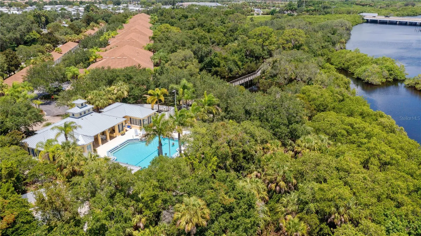 BOAT SLIP CURRENTLY AVAILABLE! First floor, split bedroom, 2 bedroom, 2 bath with detached one car garage with private view. AC, refrigerator, dishwasher, tankless hot water heater, washer and dryer all new in 2021. This community is in a tropical oasis style setting on the Braden river with boat docks, kayak/canoe launch, fishing pier, walking trails, heated pool and spa, outdoor kitchen with grill, library and workout room. Docks with lift may be available for an extra fee, they can accommodate a 25’ boat up to 5000 pounds. Call to confirm status. One deeded parking spot in addition to garage.