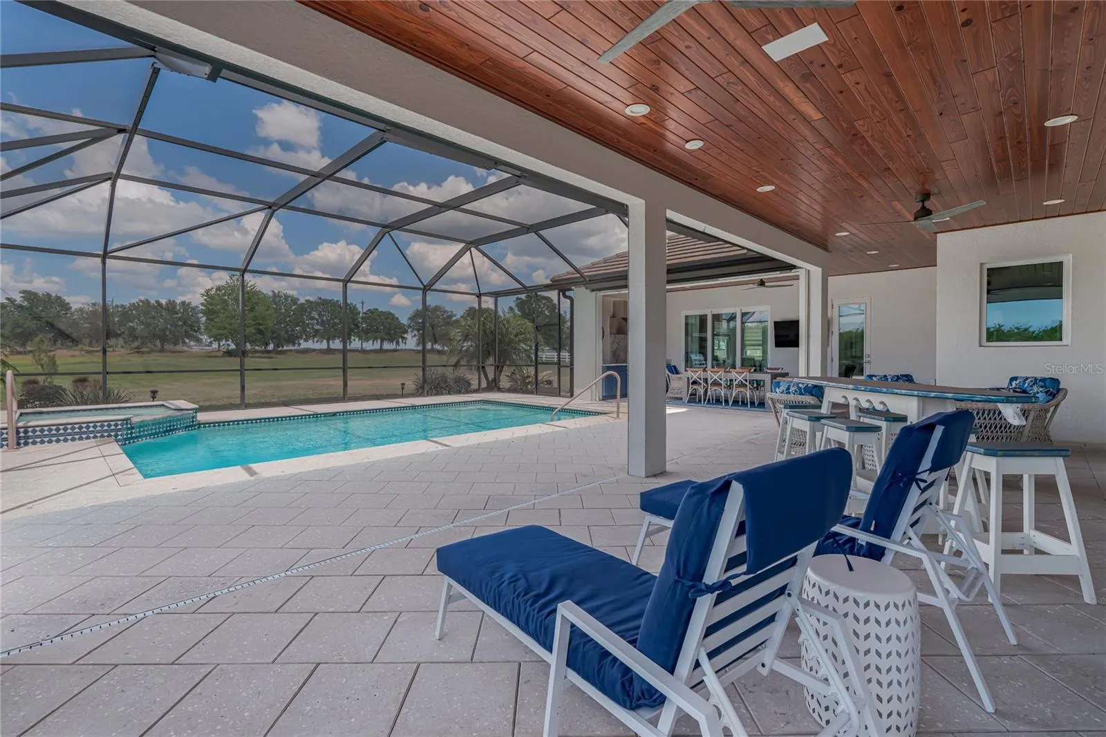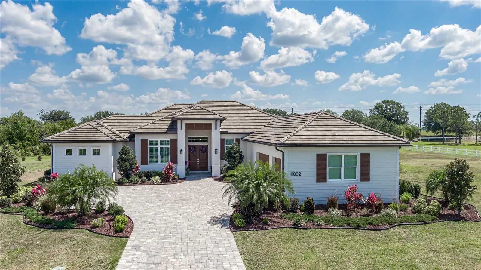 Welcome to 6002 Paddock Circle, a stunning, bright, cheerful and practically new custom-built single-story home in family-friendly Parrish, FL on 6.11 lush private acres! This 3-bedroom, 3-bathroom home in Foxbrook was meticulously designed and welcomes you with an electric gate and a long, luxurious, paver driveway setting it back from the road. The solid wood double entry doors open to an expansive open floor plan that boasts strikingly beautiful 12’ tray ceilings with crown molding and engineered hardwood flooring throughout the living area – it truly delivers a unique wow factor. The kitchen is a chef’s delight offering premium stainless-steel appliances including a dual-zone wine fridge, double oven, microwave drawer, and even a reverse osmosis water purifier. Added features are an inviting eat-in kitchen, a fabulous high-top breakfast bar, elegant stone countertops, beautiful cabinetry, and a large walk-in pantry! The home also boasts a spacious family / bonus room with a beautiful view as well as a private study. The family / bonus room has pocket sliders, the living room, dining room and primary bedroom French doors that all extend to a spacious outdoor screened lanai, patio, and pool / hot tub area. This outdoor space includes a sizeable outdoor kitchen with built-in gas grill, two TVs, and an outdoor beverage chiller. All these amenities make it a perfect setting for entertaining large gatherings or having a peaceful and quiet day at the pool. Retreat to the luxurious primary suite which serves as a sanctuary, showcasing a spa style walk-in shower with dual rain shower heads, two expansive walk-in closets, and a flex room that can serve as a reading room, an office, a nursery, a private TV room or whatever suits your needs. The air-conditioned three-car garage makes it a perfect place to set up a workout area or workshop. This spectacular property is even zoned for horses and neighbored by a conservation area, ensuring privacy. Foxbrook HOA amenities include a picnic area, playground, basketball court and fishing for residents. There is no CDD fee. Schedule your private showing soon!