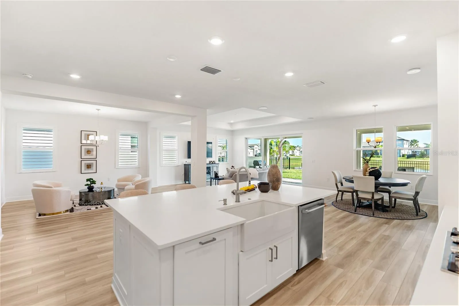 Welcome to a refined luxury residence in the gated community of Sweetwater at Lakewood Ranch, where modern elegance, spacious design, and high end upgrades come together to create an exceptional place to call home. As you enter the soaring two story foyer, abundant natural light and clean architectural lines set the tone for the rest of the home. The open concept living area offers beautiful lake views through oversized sliders and flows effortlessly into the dining room and gourmet kitchen. This stunning kitchen features a large island, upgraded cabinetry, quartz countertops, stainless steel appliances, a polished tile backsplash, under cabinet lighting, and a walk in pantry, making it ideal for both everyday living and entertaining. Upstairs, a spacious loft provides the perfect second living area for a movie lounge, game room, office, or retreat. The primary suite feels like a private sanctuary with serene natural light, two walk in closets, and a spa inspired bathroom complete with an oversized walk in shower, a soaking tub, upgraded tile, and dual vanities. All additional bedrooms are generously sized, offering comfort and flexibility for guests, family, or a home workspace. The entire home reflects a calming coastal palette, luxury flooring, and meticulous attention to detail. Outdoor living is equally impressive, featuring peaceful lake views and a fenced yard perfect for relaxing mornings or sunset evenings. Residents of Sweetwater at Lakewood Ranch enjoy a resort style lifestyle with incredible amenities including a fitness center, sparkling pool, pickleball courts, a playground, walking paths, and a secure gated entrance. This home offers the perfect blend of comfort, luxury, and convenience just minutes from top rated schools, shopping, dining, medical facilities, golf courses, and the world renowned Gulf Coast beaches.
