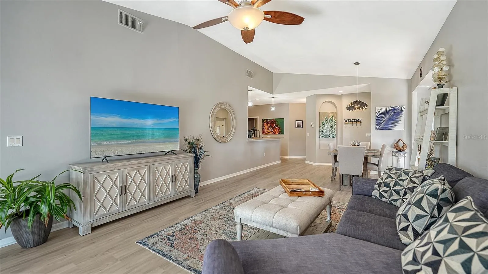 - Ceiling Fans(s), Open Floorplan, Living Room/Dining Room Combo, Split Bedroom, Window Treatments, High Ceilings, Vaulted Ceiling(s)