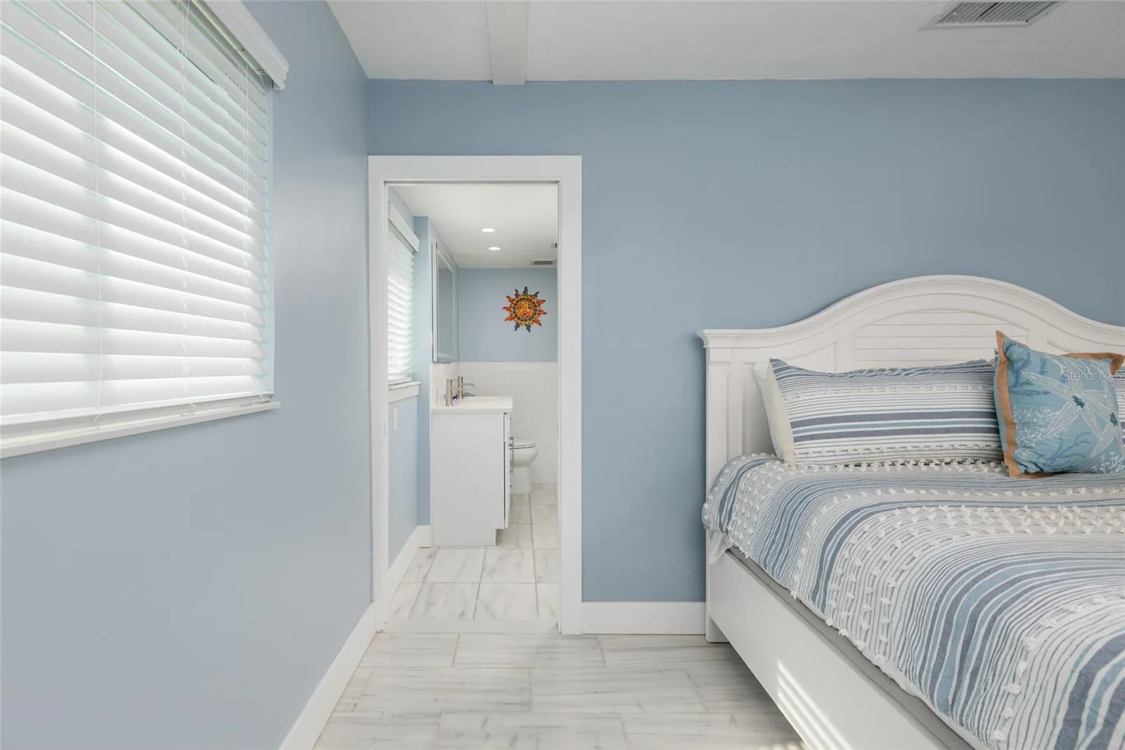 Interior highlights include marble floors throughout for timeless coastal elegance, storm-rated windows and doors, and fully rewired electrical systems plus a 2025 HVAC and water heater. Major upgrades span the kitchen and baths with stylish vanities and cabinets and GE Profile appliances. The oversized kitchen features a center island and a separate bar with a custom live-edge top complemented by quartz countertops, all with water views. The primary suite is redesigned with a custom etched-glass entry, a walk-in closet with custom cabinetry, pocket door and a stylish step-in shower.