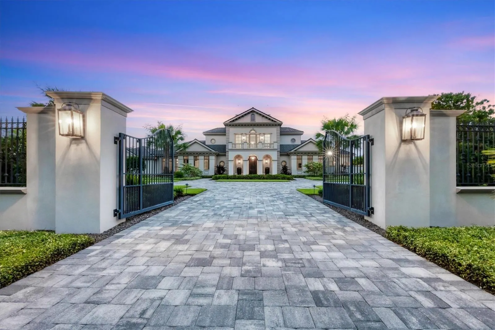 Welcome to 20819 Parkstone Terrace, a residence of unparalleled elegance and design. This 4-bedroom, 5.5-bath with a guest casita residence was featured on the cover of Home and Design Magazine. This award-winning home, a collaboration between Perrone Construction, CMSA Architects, Century Furniture, International Design Source and Parkstone Estates, exemplifies the pinnacle of luxurious living. As you step into the grand foyer, you’re greeted by a soaring two-story ceiling and a magnificent spiral staircase. The custom trim on the walls and crown molding, along with bespoke windows, create an aura of sophistication. The living room features a matte-finished travertine gas fireplace, elegant columns and expansive windows, leading to a formal dining area with glass French doors that open to the lanai. The wine and coffee room is a connoisseur’s dream, complete with an ice maker, mini refrigerator, leather-finished granite countertop, Sub-Zero wine cooler, Wolf coffee machine and a pewter-topped eat-in bar. The gourmet kitchen is a chef’s paradise, boasting two enormous islands with authentic quartzite countertops, a custom tile backsplash, two Asko dishwashers, two trash cabinets, a cabinet-faced warming drawer, Wolf microwave and range, Sub-Zero professional-grade refrigerator and freezer, and glass-faced top row cabinets. The privately located primary suite is a sanctuary of comfort and style, filled with natural light, high ceilings with crown molding, private lanai access and large banks of windows. It includes a private office with high ceilings, crown molding, large windows, and a pocket door for privacy. The primary bath is a spa-like retreat with travertine flooring, two custom-designed vanities with waterfall quartz tops, a freestanding soaking tub, a makeup desk area, a water closet and a sauna. The courtyard, adorned with travertine pavers and a privacy wall, also provides access to the family room. The primary closet is a custom-organized masterpiece, thoughtfully designed with storage for shoes, jewelry, an ironing station and hanging clothes of all lengths, all illuminated by a designer chandelier. The family room features large banks of windows and access to the courtyard. Additional features include a mud room connecting to the garage, a laundry room with abundant cabinetry, large banks of windows and granite countertops, central vacuum system, engineered wood flooring, 10-foot solid doors and whole-house automation. The second floor hosts three spacious guest bedrooms, each with a custom walk-in closet, and en-suite baths with glass-enclosed showers, vanities and custom linen-look tile. Each bedroom has glass door access to a travertine terrace with lake and pool views. The upstairs laundry room offers additional storage and wood-look tile flooring. The property also includes a one-bed, one-bath casita with travertine flooring, high vaulted ceiling with crown molding and a bath that doubles as a pool bath. The outdoor space is an entertainer’s dream, featuring a gas grill, refrigerator, travertine pool deck, custom-designed saltwater pool with a dark bottom, sun shelf and lush landscaping. The screened-in and covered living and dining areas provide the ideal setting for outdoor gatherings. The fully fenced-in yard with iron fencing ensures privacy and security. The home at 20819 Parkstone Terrace is where every detail has been meticulously crafted, offering an unparalleled lifestyle of luxury and sophistication.