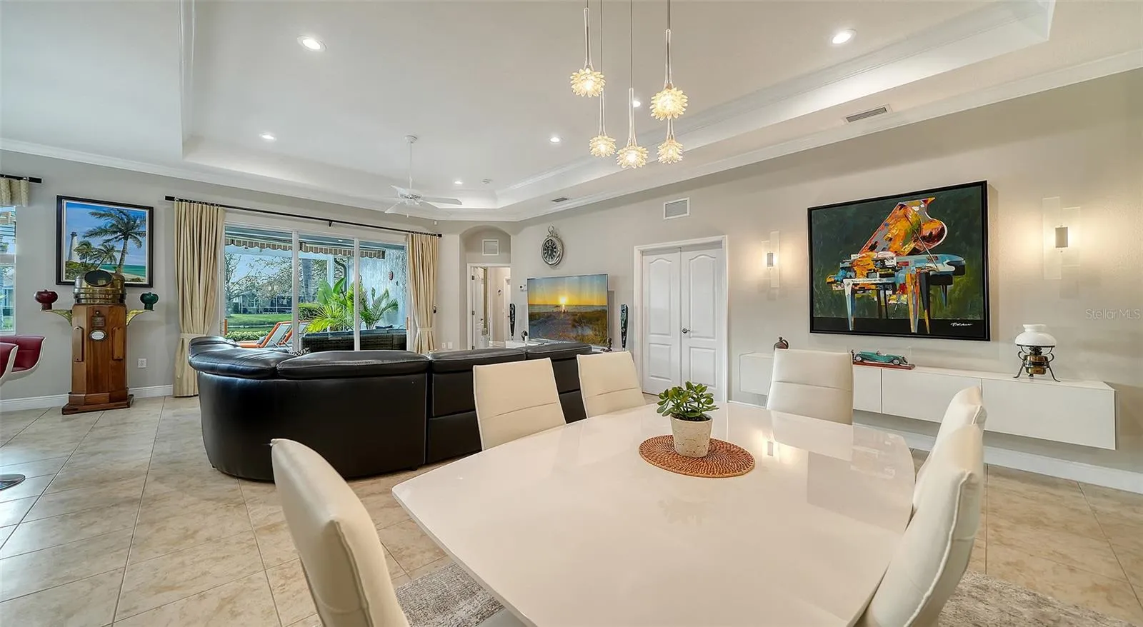 LOCATION, LOCATION, LOCATION! Beautifully maintained and ideally positioned within the highly sought-after community of Wisteria Park, this exceptional residence offers the perfect blend of elegance, comfort, and Florida lifestyle living. Just minutes from pristine Gulf beaches, premier dining, and upscale shopping, the location is truly second to none. This spacious three, bed, two bath home plus a versatile den enjoys captivating water views and offers generous space for both everyday living and entertaining. Upon entry, you are welcomed into a bright, open-concept living area highlighted by soaring tray ceilings, crown molding, and an abundance of natural light. A defined dining space thoughtfully frames the tranquil lake views, while the expansive great room features sliding glass doors that seamlessly extend the living space to the outdoors. The extended lanai is a true showpiece, complete with clear view panoramic screening and coveted western exposure providing front-row seating to breathtaking sunsets. Designed for elevated outdoor living, this impressive space includes gas and electric connections for a future summer kitchen, electronic awnings for additional shade, and a peaceful setting to relax while enjoying serene water views and Florida wildlife. The open kitchen is both functional and refined, offering generous cabinetry, expansive work surfaces, a center island with breakfast seating, a closet pantry, and new top-tier appliances including an induction range and a refrigerator which displays your personal photos. A charming breakfast nook overlooks the lake, creating a picturesque start to your day. The primary suite is a private retreat, featuring hardwood oak flooring, stunning water views, dual walk-in closets, and a spa-inspired bath with dual vanities, a garden tub, and a glass-enclosed walk-in shower. The den, complete with custom built-ins, is currently configured as an office but easily adapts to a fourth bedroom, media room, or creative space. Two additional well-sized guest bedrooms and a guest bath provide comfort and privacy for family and visitors. Additional highlights include plantation shutters, impact windows, central vacuum, a inside utility room, and an air-conditioned two-car garage with upgraded 20000-lumens lighting. With low HOA fees, maintenance-free grounds, and a community pool just steps away, this home offers effortless living in a beautifully maintained neighborhood. With easy access to the renowned Gulf beaches of Anna Maria Island and Holmes Beach, as well as Robinson Preserve, De Soto National Memorial Park, and The Nest, this location offers endless opportunities to enjoy some of the area’s most treasured coastal destinations. Whether you are seeking a full-time residence or an elegant seasonal retreat, this property delivers location, lifestyle, and luxury in one remarkable offering.