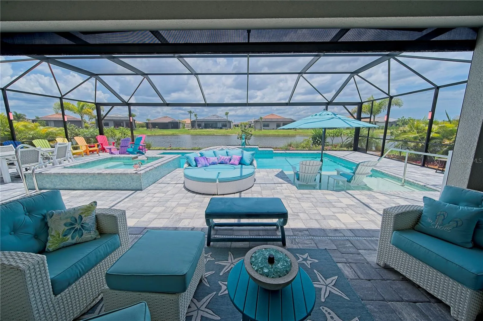 Welcome to Luxury living at its finest, in this SPECTACULAR 1 of a kind Stellar Grand in the premier 55+Lakewood Ranch community. This four bedroom, four bathroom home, nestled within the highly sought after active community of Del Webb Lakewood Ranch, features FULL SOLAR POWER with 3 Tesla Power walls. (How would a $40 a month electric bill sound?) This meticulously maintained residence has IMPACT HURRICANE WINDOWS AND DOORS for your peace of mind. (With remote/app controlled Hunter Douglas Silhouette window treatments throughout) This home boasts one of the most exquisite pools in all of DelWebb!The heated saltwater pool is not your standard Del Webb pool. It’s custom from 4 feet to 6 feet deep, unlike any other and has exquisite aqua glass tile and Pebbletec bottom. The oversized attached spa has the second waterfall. There’s also a chair ledge with a place for an umbrella for you to enjoy your pool while soaking your feet, relaxing and enjoying all that Florida living offers.The outdoor kitchen features a grill, with a smoker option, custom vent, sink, granite countertop with plenty of storage cabinets, and Sonos speakers to take your entertaining to the next level. The exquisite kitchen, is a chef’s dream, and features a designer backsplash with a tiled mosaic piece above the cooktop, custom Butler pantry with upper and lower cabinets and top of the line Cambria quartz! The chef’s gourmet kitchen features dual full size ovens, stainless steel appliances, gas cooktop, under counter lighting, composite sink, soft close drawers, and 10 foot Island! This beautiful home has a drop zone leading to the three car extended garage which features an epoxied floor and storage cabinets.The laundry room has built-in cabinets and a large sink. There’s also a whole house filtration system, soft water system, reverse osmosis, and tankless water heater. A job transfer is the only reason for leaving this beautiful home ! -$13,000 custom Golf cart INCLUDED with a full price offer! Del Webb Lakewood Ranch is a gated, landscape maintained community with a magnificent clubhouse that is home to many activities and events. Residents have access to 6 tennis courts, 8 pickleball courts, and 4 bocce courts. The fitness center is one of the finest . The resort style pool and our Oasis restaurant enhances the feeling of Living on vacation. Close to Everything, but Away from it all, it is minutes from shopping, close to Waterside, the UTC mall, Benderson Rowing Venue and easy access to the beautiful beaches, downtown Sarasota as well as Tampa.