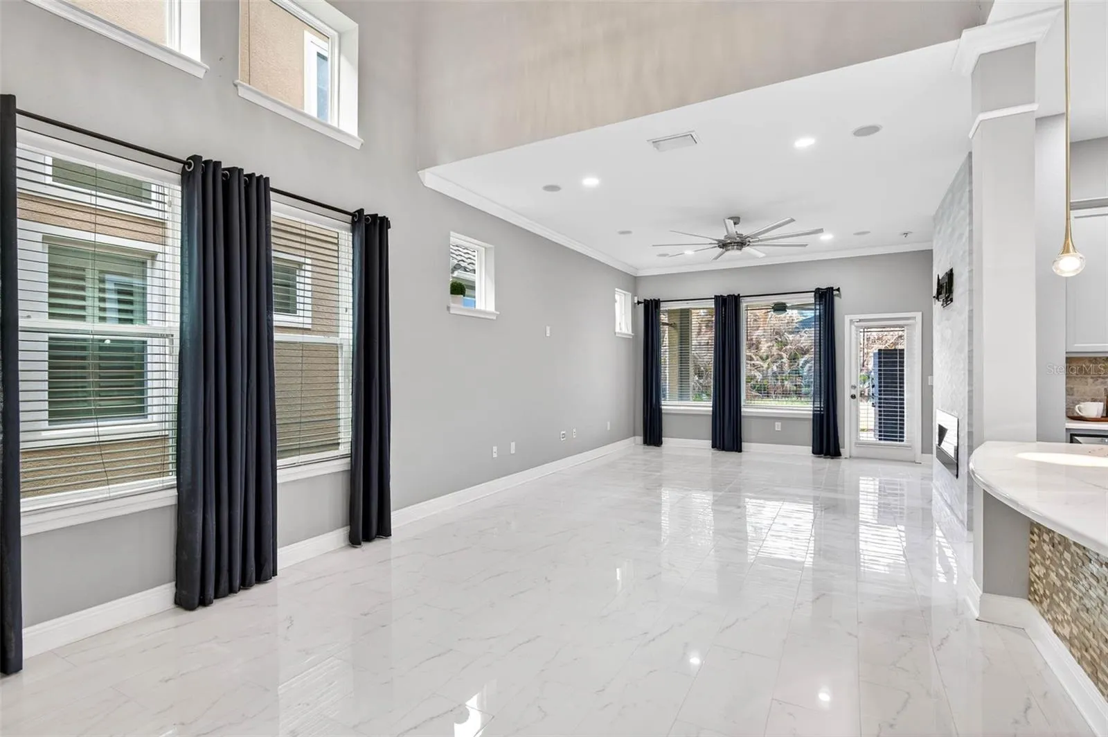 - Ceiling Fans(s), Crown Molding, Open Floorplan, Thermostat, Walk-In Closet(s), Living Room/Dining Room Combo, Kitchen/Family Room Combo, Primary Bedroom Main Floor, High Ceilings, Vaulted Ceiling(s)