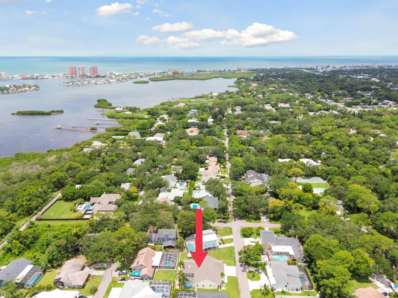 Nestled in the sought after community of Harbor View, this stunning Seminole home boasts nearly a quarter-acre of serene, park-like surroundings. As you arrive, you’ll notice the lush landscaping with outdoor lighting that frames this charming block home, featuring Key West-style siding built by Chouinard Builders LLC. Inside, this spacious 4-bedroom, 3-bathroom, 3-car garage pool home spans over 2,600 square feet. You’ll be greeted by 16-foot cathedral ceilings in the foyer, dining room, and living room, accented by crown molding throughout. Double pane arched windows in the dining and family rooms provide lovely views of the front yard and pool. The dining room boasts raised custom trim panels and a dimmable chandelier, creating a perfect ambiance for gatherings. The kitchen is sure to impress with its quartz countertops, large island, tile backsplash, and stainless steel appliances, including a brand new dishwasher installed in 2024. Storage is certainly no issue here with a large walk-in pantry featuring wood shelving, and an eat-in space with three windows overlooking the pool. The adjacent family room, with its 10-foot high ceilings, centers around a wood-burning fireplace with custom river stone from floor to ceiling, a large wood mantle, and a 65” flat screen TV included with the home. A hidden custom media closet is pre-wired for cable, a security system, and a sound system. The owner’s suite is a true retreat, featuring stunning wood flooring, cathedral ceilings, double pane windows, and a double French door that opens to the pool. The oversized ensuite bathroom has been renovated with a white shaker vanity, soft-close cabinets, double sinks set in quartz countertops, a two-person built-in jetted tub, and a large glass block walk-in shower. Two large walk-in closets come complete with a built-in wall safe. A triple sliding glass door leads to the fenced-in backyard oasis that dreams are made of. The large screened-in tile lanai features white wood coastal ceilings and beautiful custom stone columns. Enjoy the heated saltwater pool and spa with a waterfall and custom tile with a pebble tech surface. BBQ’ing with friends and family are taken to a whole new level with a large built in outdoor kitchen with granite countertops, large sink, and built in propane gas lion grill, and built-in beverage fridge. A built-in Bose sound system and outdoor lighting elevate this entertainer’s space. Additional upgrades include a new roof installed in December 2022, a water softener and whole house filtration system installed in 2020, a Rainbird irrigation control system, a whole house central vacuum system, and the list goes on. Less than 2 miles from the Gulf of Mexico and a boat ramp, yet not in a flood zone, this coastal community offers something for everyone. You’ll be less than a mile from dining and entertainment at the new Seminole City Center, and just a stone’s throw away from Boca Ciega Millennium Park with views over Boca Ciega Bay. This home has been cherished by its original owners and is ready for you to enjoy for years to come. NO FLOOD INSURANCE REQUIRED! Schedule your showing today!