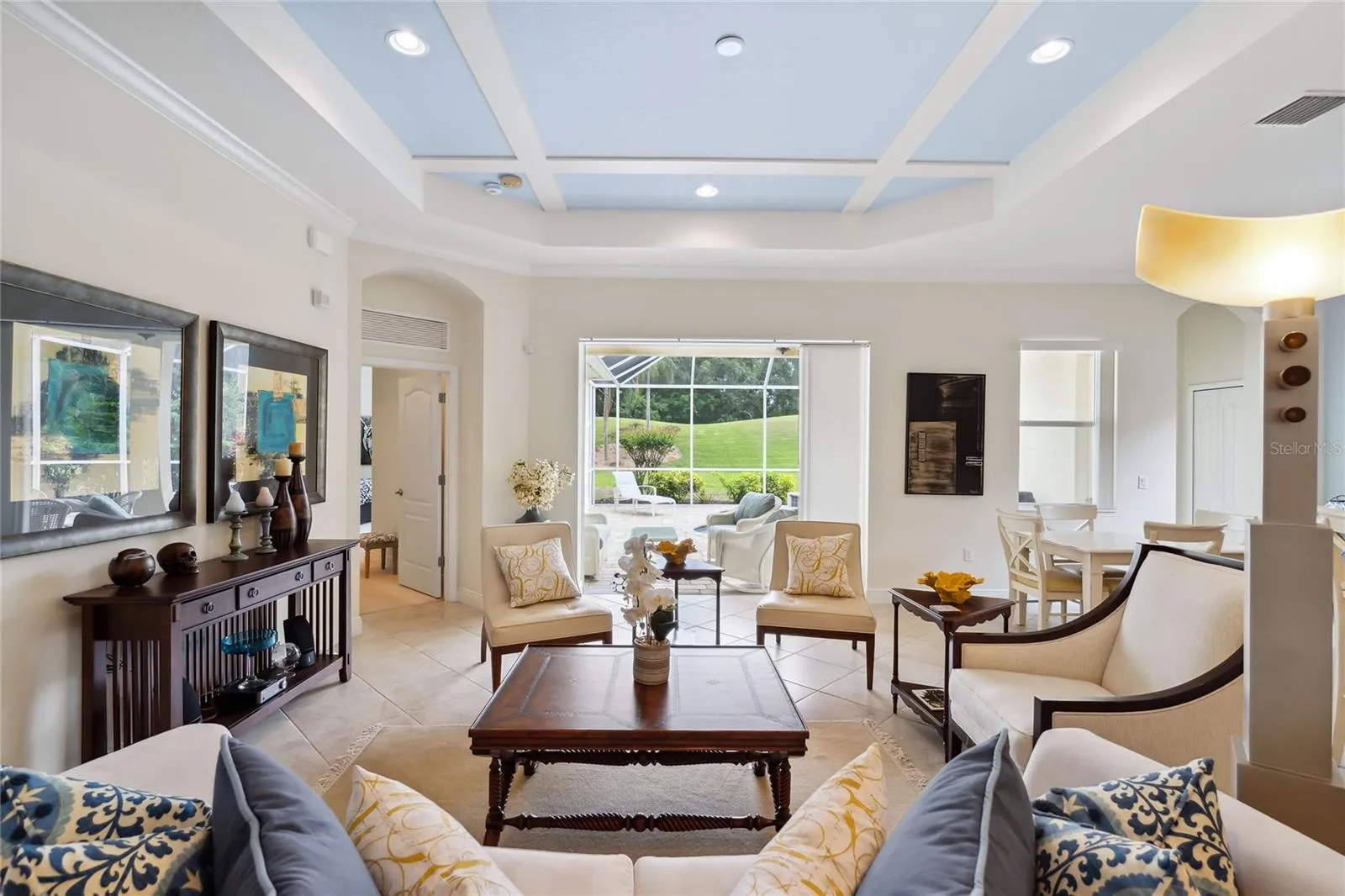 - Ceiling Fans(s), Open Floorplan, Walk-In Closet(s), Living Room/Dining Room Combo, Eat-in Kitchen, Kitchen/Family Room Combo, Primary Bedroom Main Floor, Split Bedroom, High Ceilings, Stone Counters, Coffered Ceiling(s)