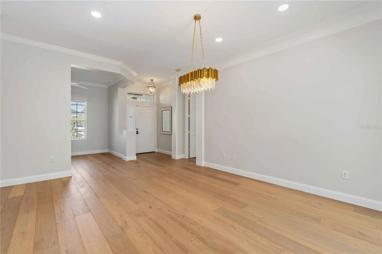 One or more photo(s) has been virtually staged. Welcome to effortless Florida living in this beautifully maintained Lancaster model by Neal Communities, ideally positioned on a quiet street and backing to a peaceful nature preserve. With over 2,000 square feet of thoughtfully designed living space, this 3-bedroom, 2-bath split floorplan offers privacy, functionality, and timeless style. From the moment you step inside, rich engineered oak hardwood flooring flows throughout the main living areas and bedrooms, complemented by soaring 10-foot ceilings and abundant natural light. Expansive windows and sliding glass doors frame tranquil preserve views, creating a seamless connection between indoor and outdoor living.