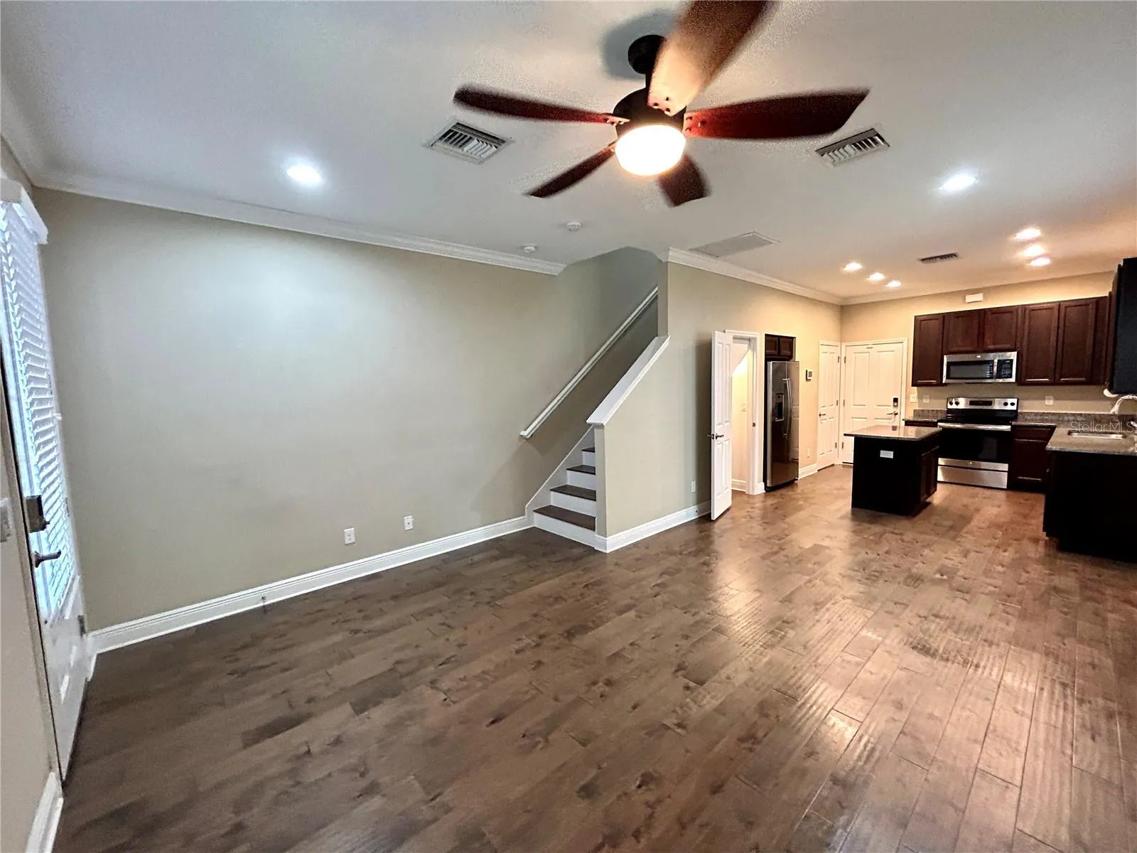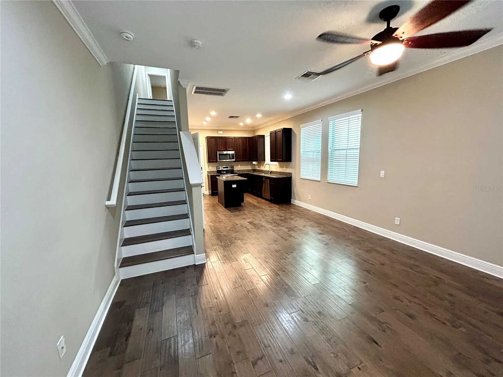 - Ceiling Fans(s), Open Floorplan, Thermostat, Walk-In Closet(s), Living Room/Dining Room Combo, Stone Counters