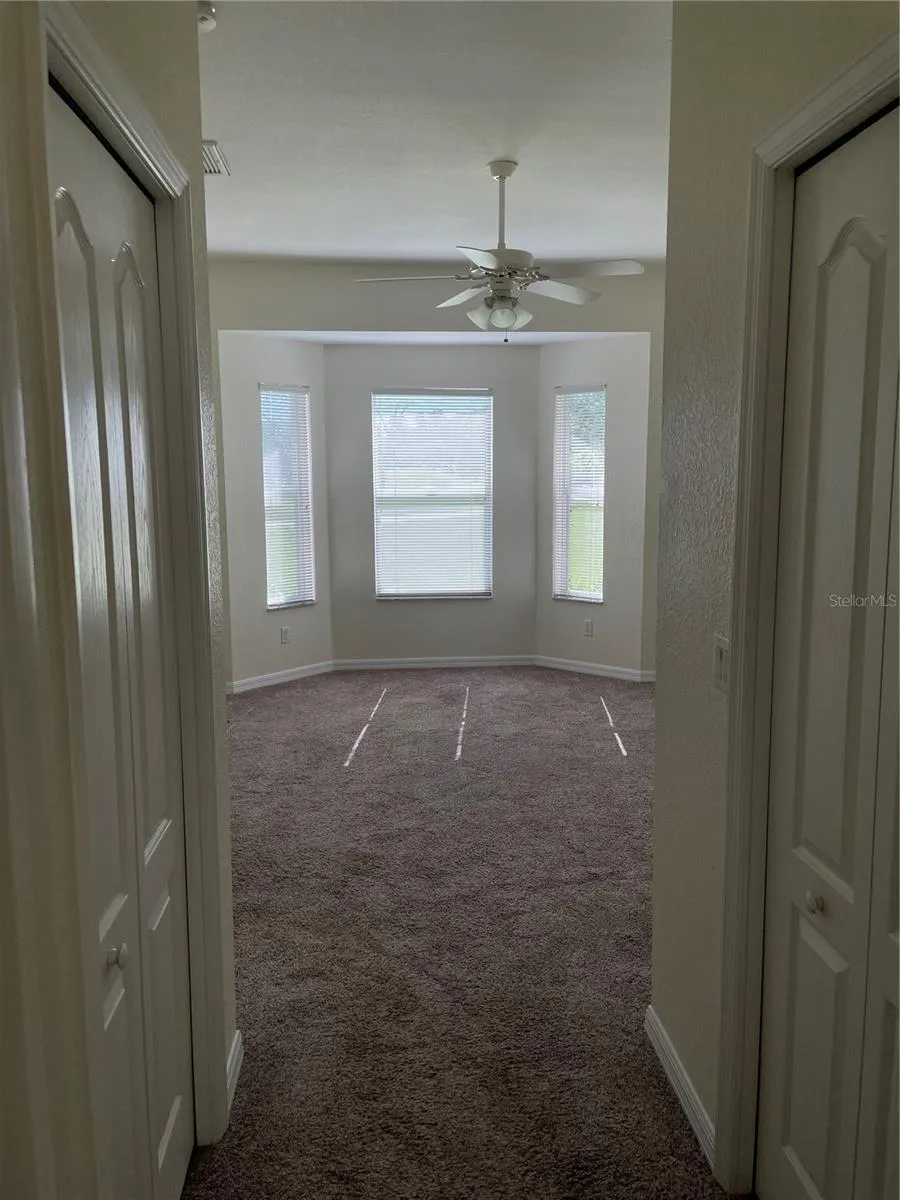 - Ceiling Fans(s), Thermostat, Walk-In Closet(s), Living Room/Dining Room Combo, Eat-in Kitchen, Primary Bedroom Main Floor, Split Bedroom, Window Treatments, High Ceilings, Stone Counters, Solid Wood Cabinets, Solid Surface Counters
