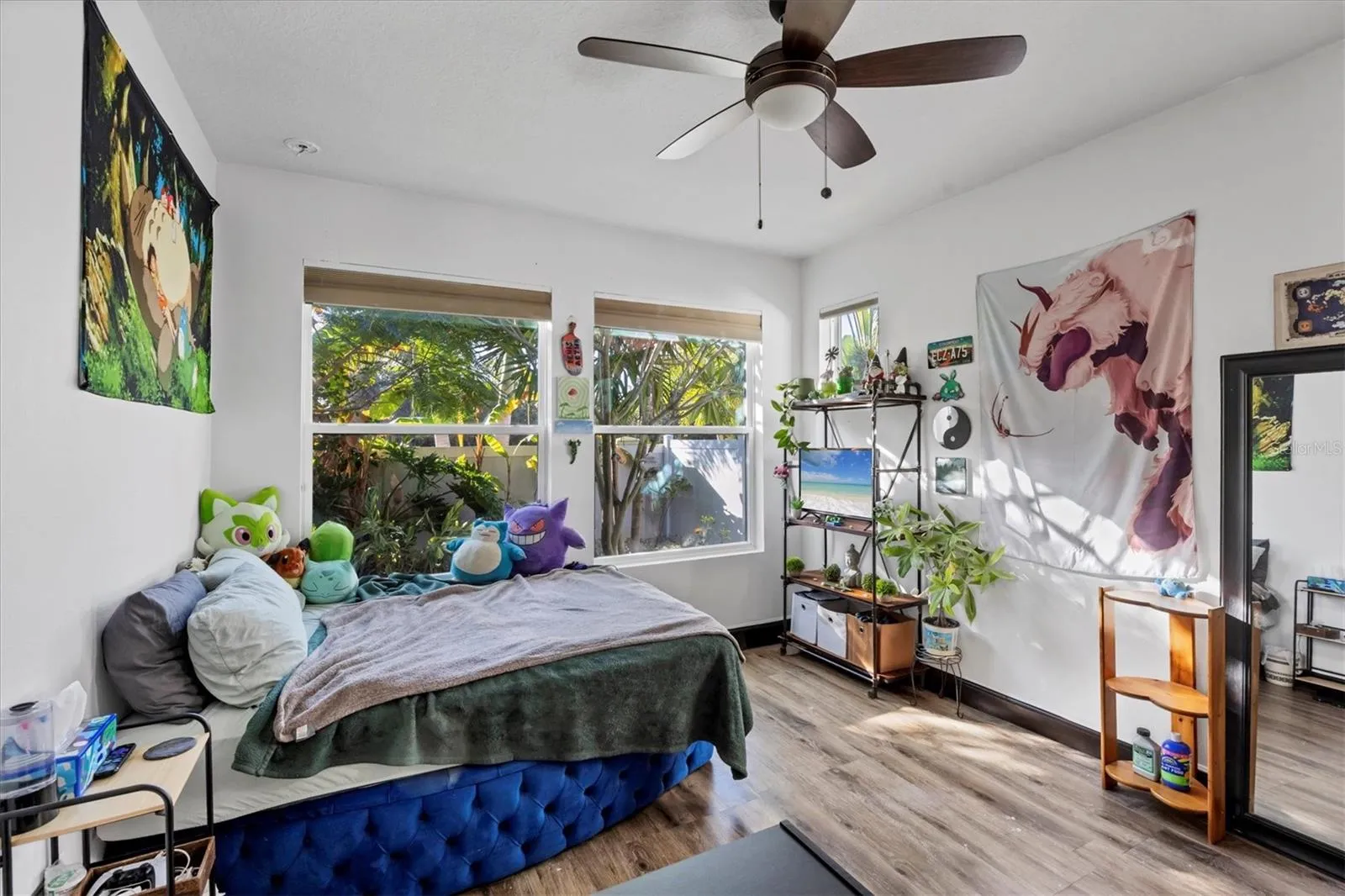 - Ceiling Fans(s), Open Floorplan, Thermostat, Walk-In Closet(s), Eat-in Kitchen, Kitchen/Family Room Combo, Primary Bedroom Main Floor, Split Bedroom, Window Treatments, High Ceilings, Stone Counters, Pest Guard System